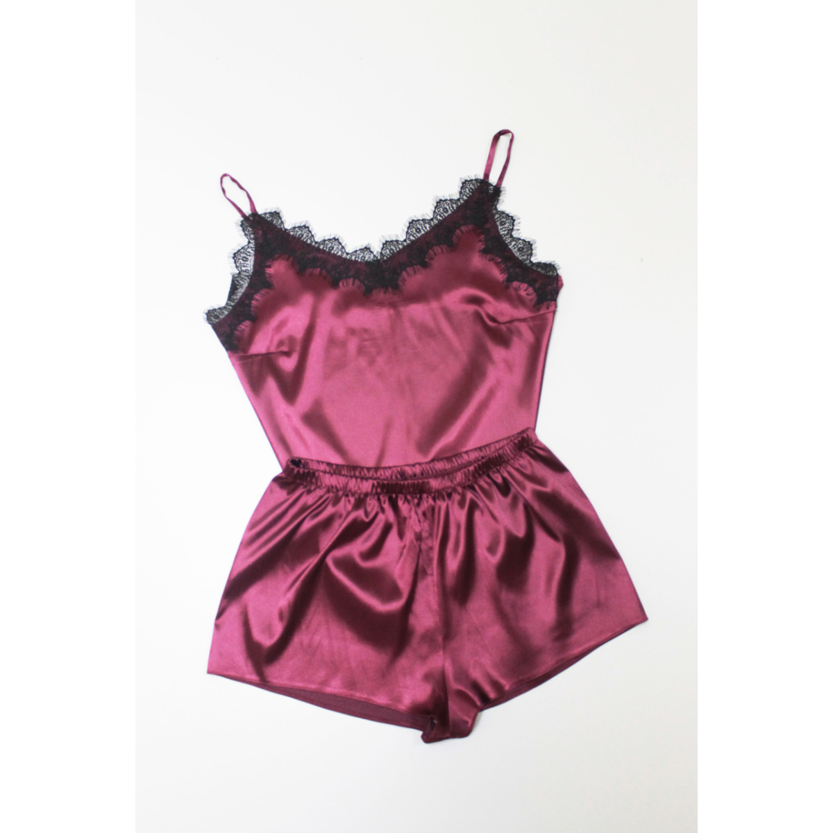 Піжама жіноча атласна з мереживом майка+шорти, бордо XS/S