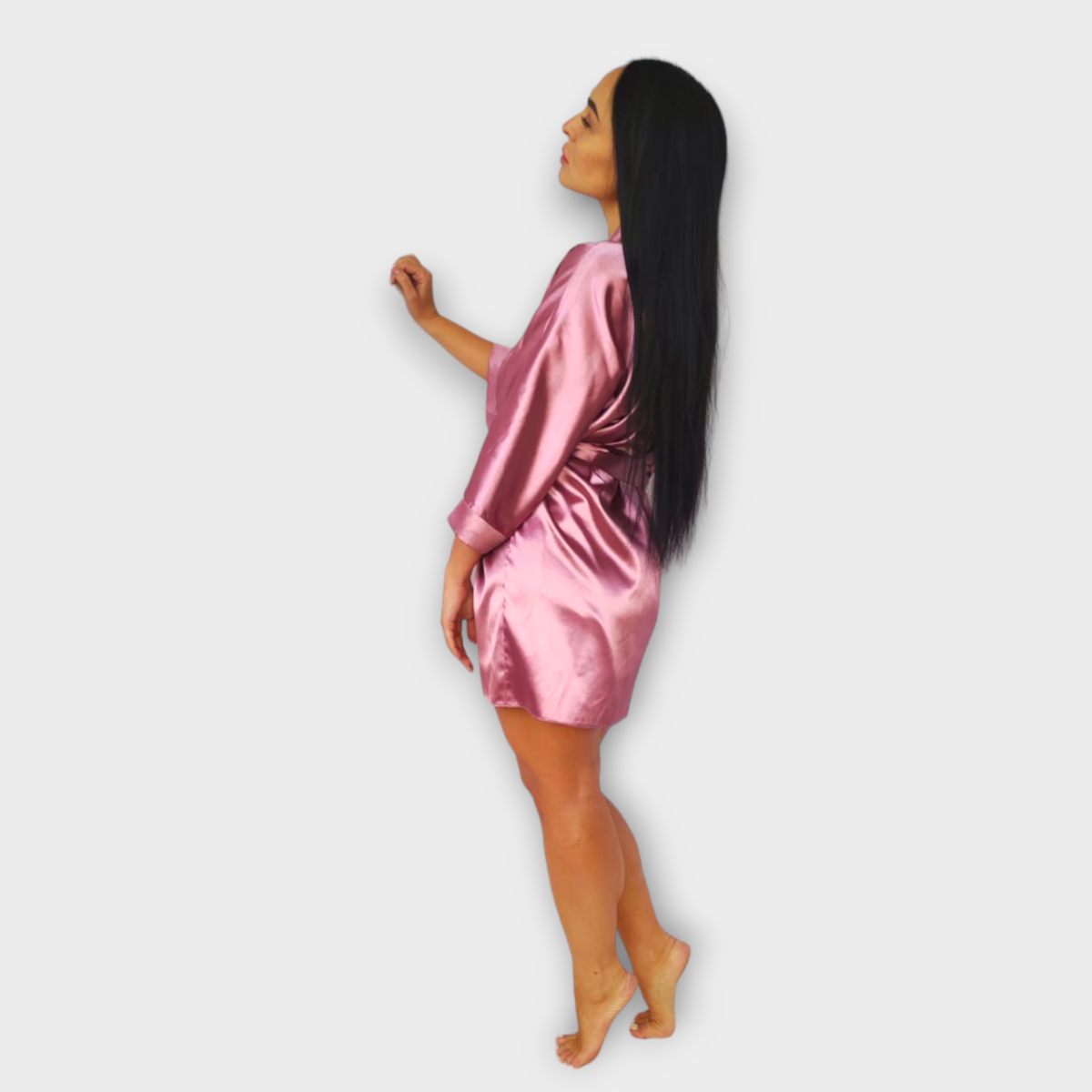 Халат жіночий червоний виконаний із стрейч-атласу, що дає додаткову свободу руху.