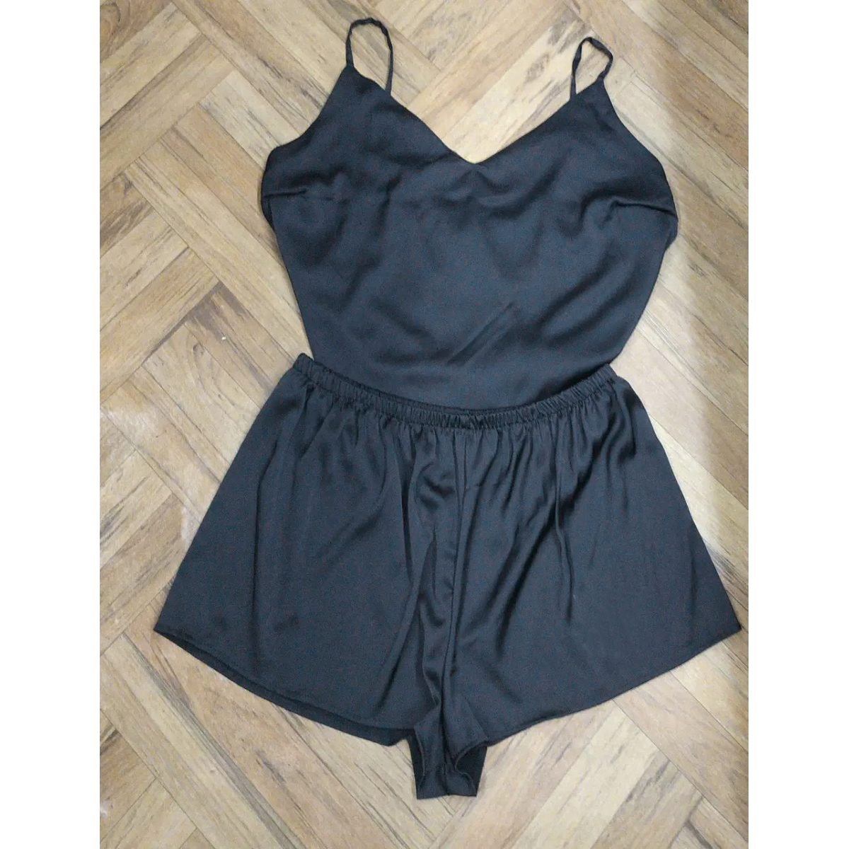 Піжама жіноча шовкова майка з шортами, чорна, 42