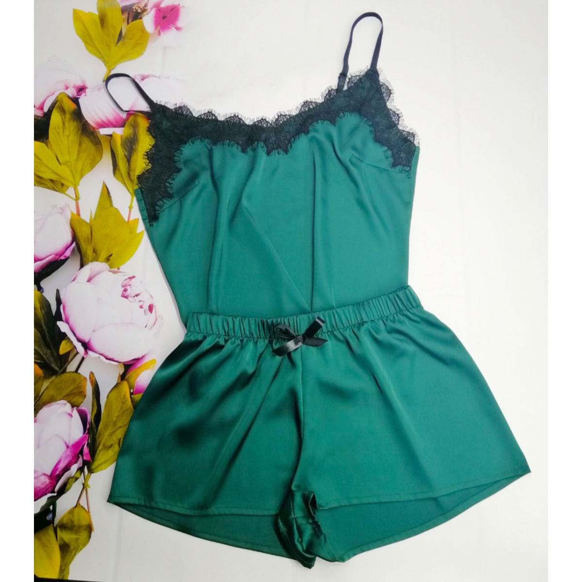 Піжама жіноча шовкова зелена майка та шорти 48