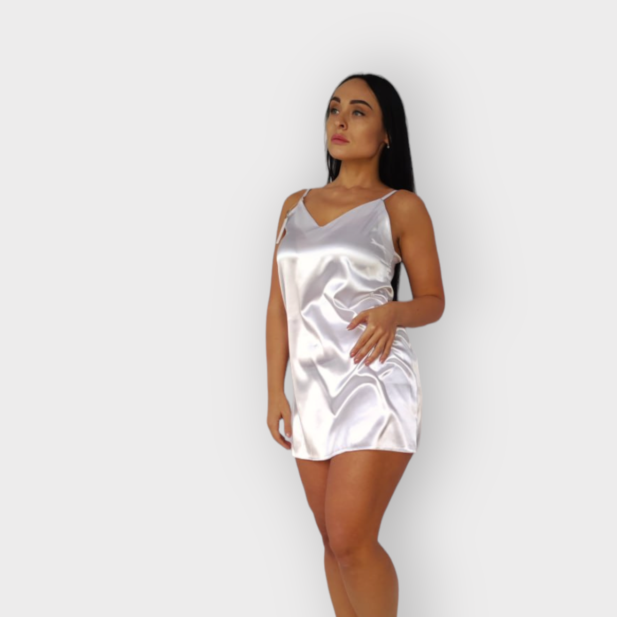 Жіноча нічна сорочка атласна на регульованих бретельках. Біла, 4XL