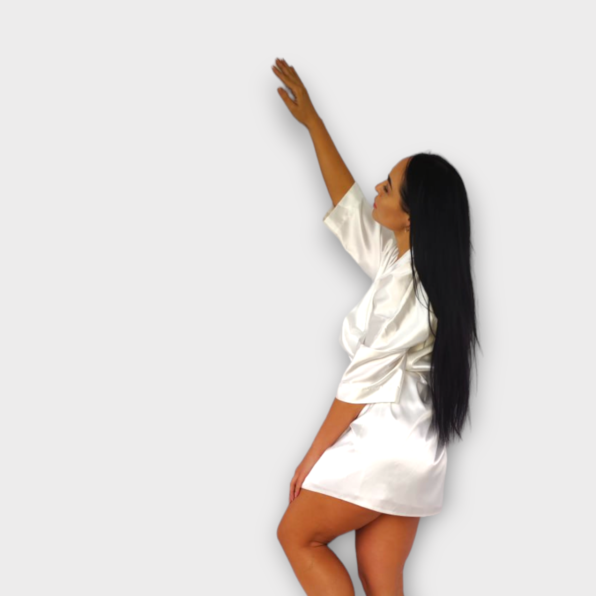 Халат жіночий атласний під пояс довжина 90см білий, XS / S