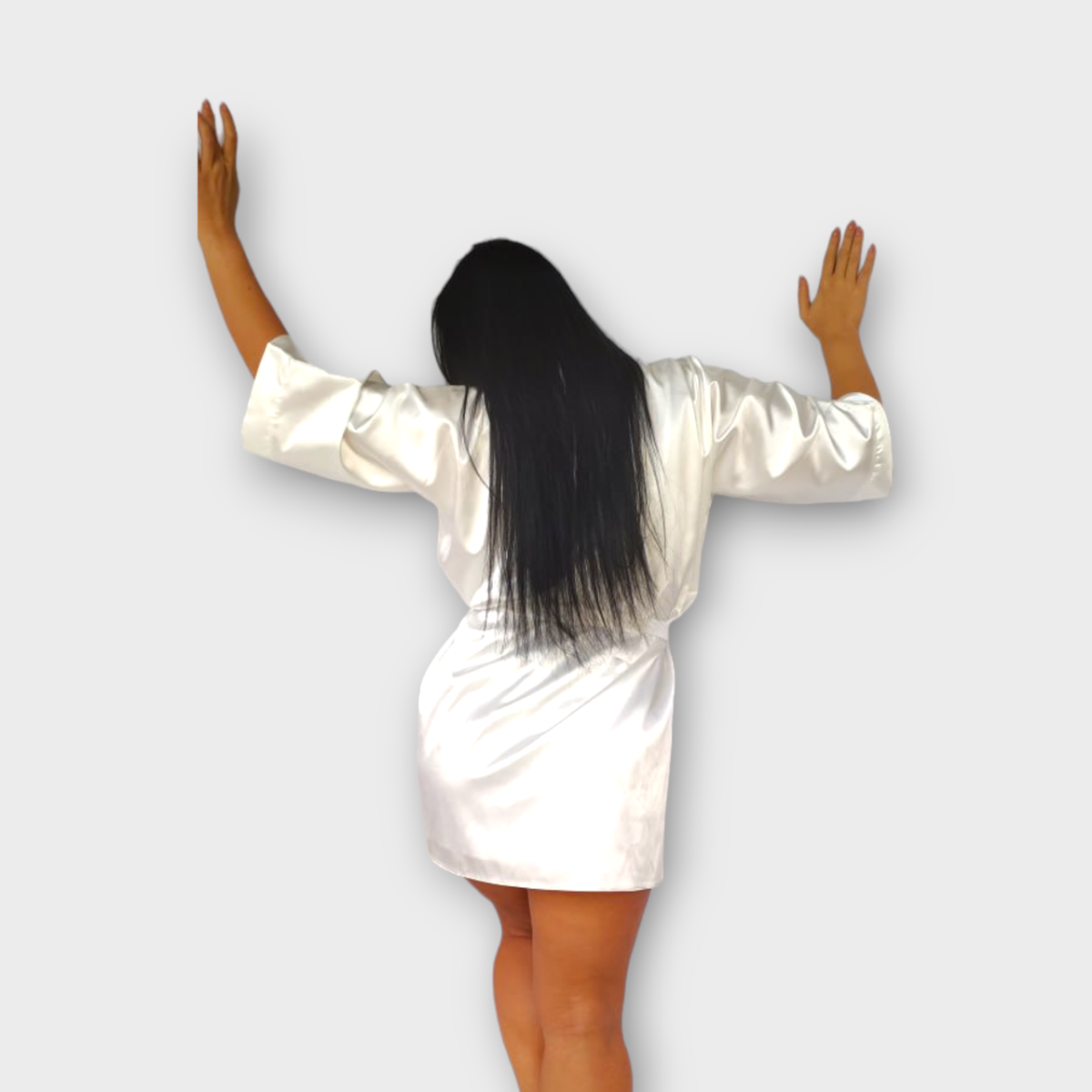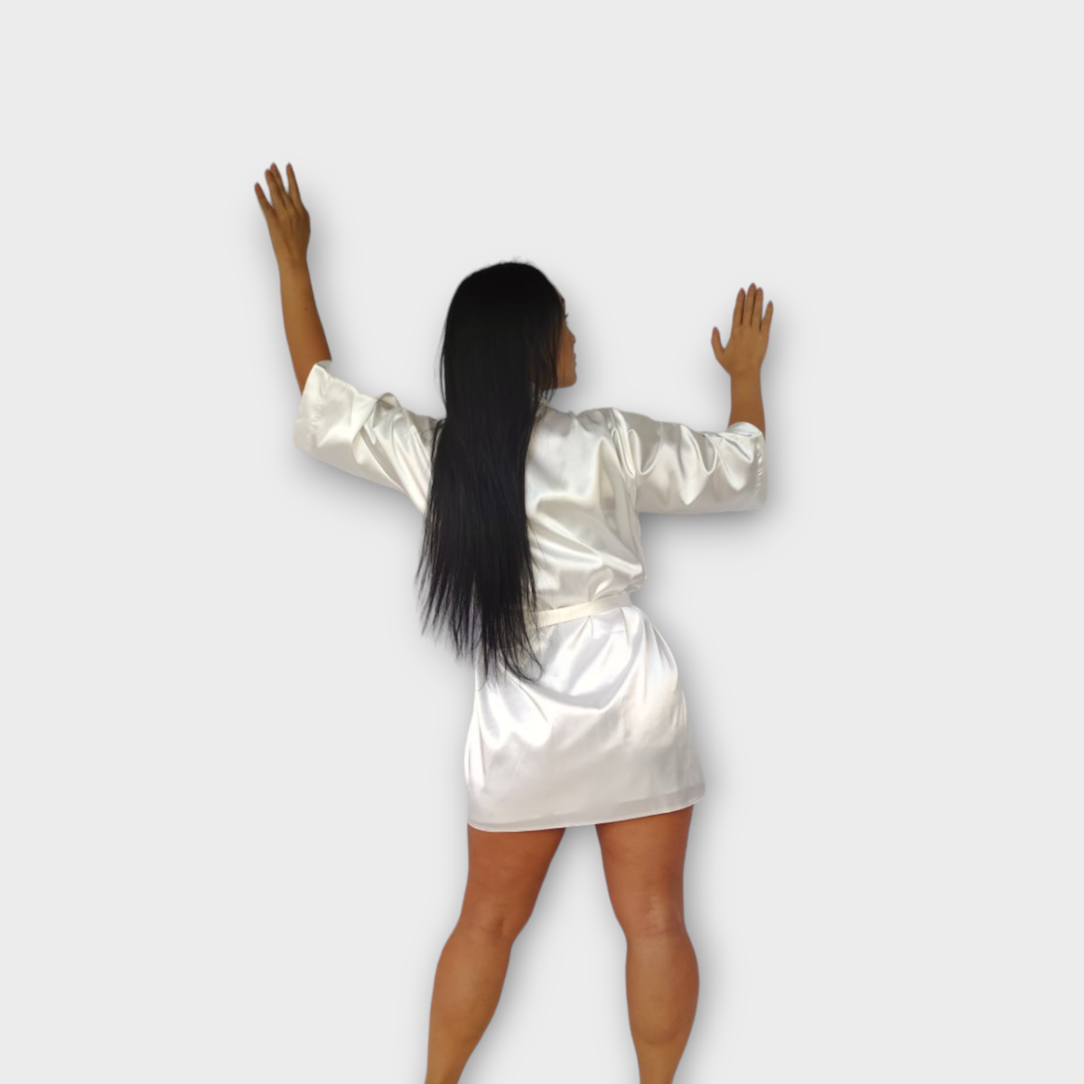 Халат жіночий атласний під пояс довжина 90см білий, XL/2XL