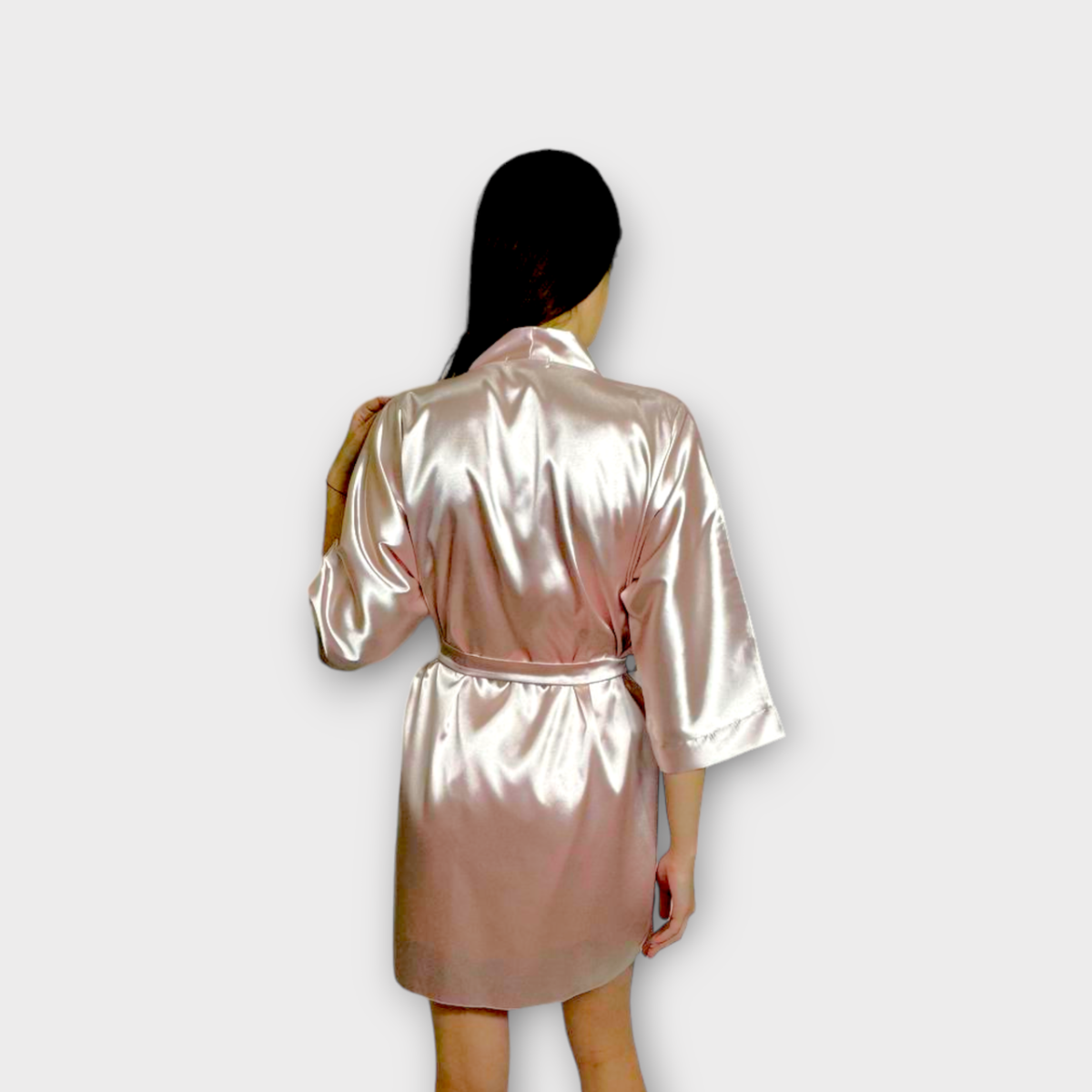 Халат жіночий атласний під пояс довжина 90см пудра, M/L