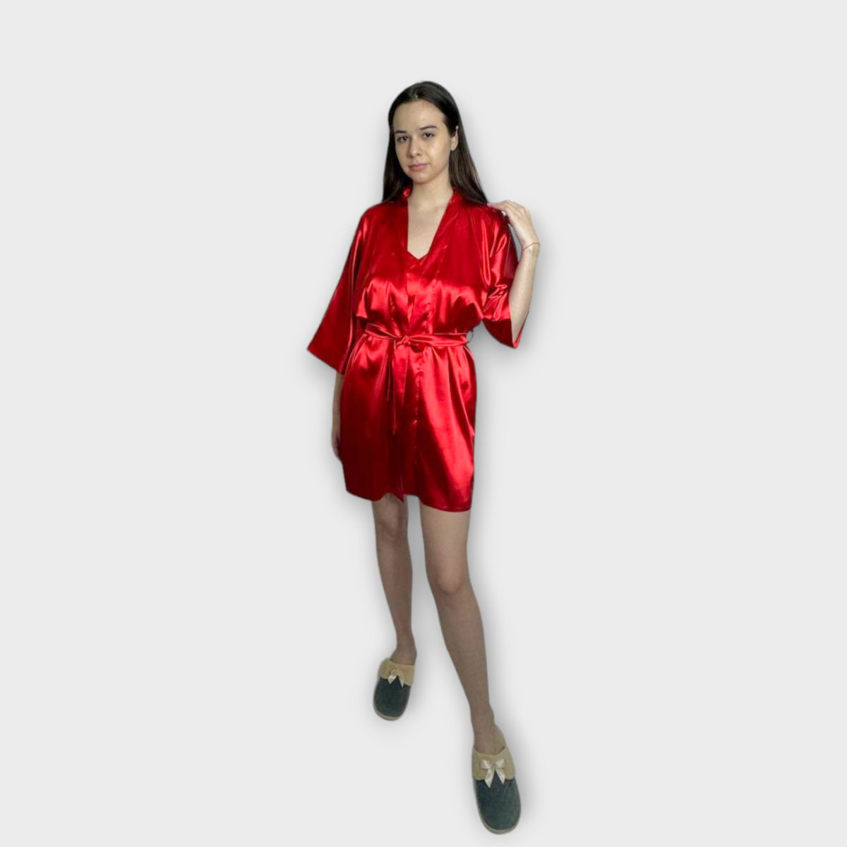 Халат жіночий атласний під пояс довжина 90см червоний, 3XL/4XL