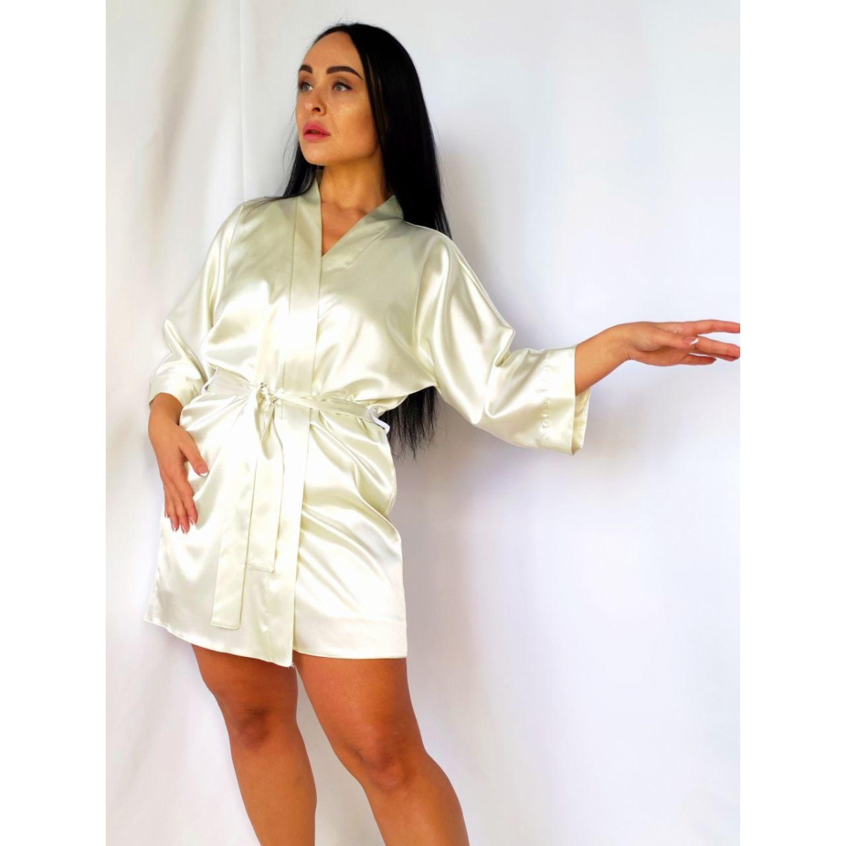 Халат жіночий атласний під пояс довжина 90cм молочний, XL/2XL