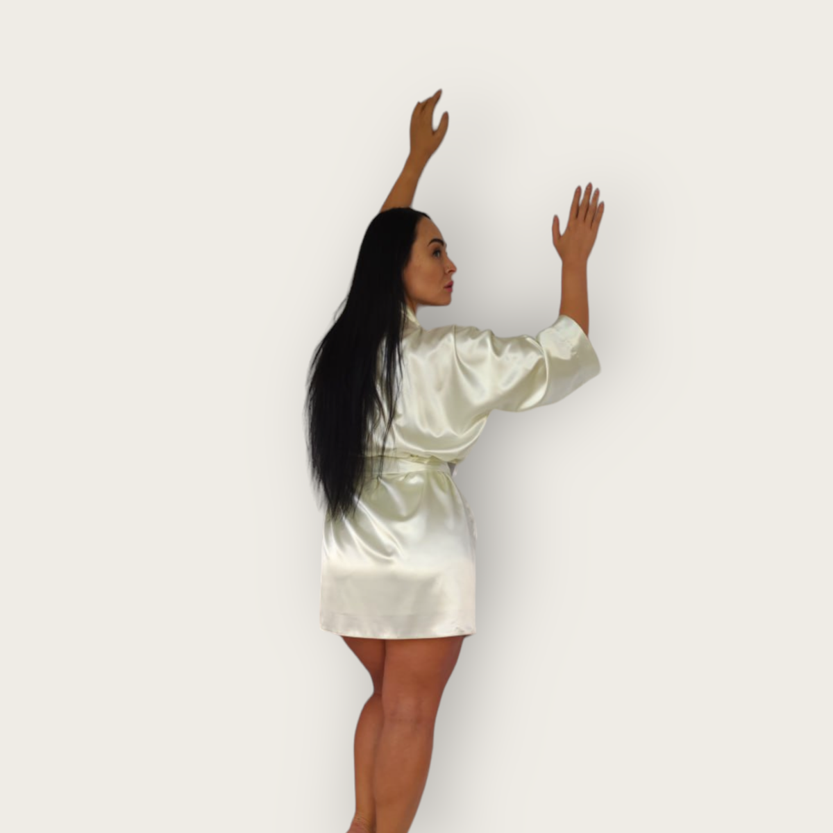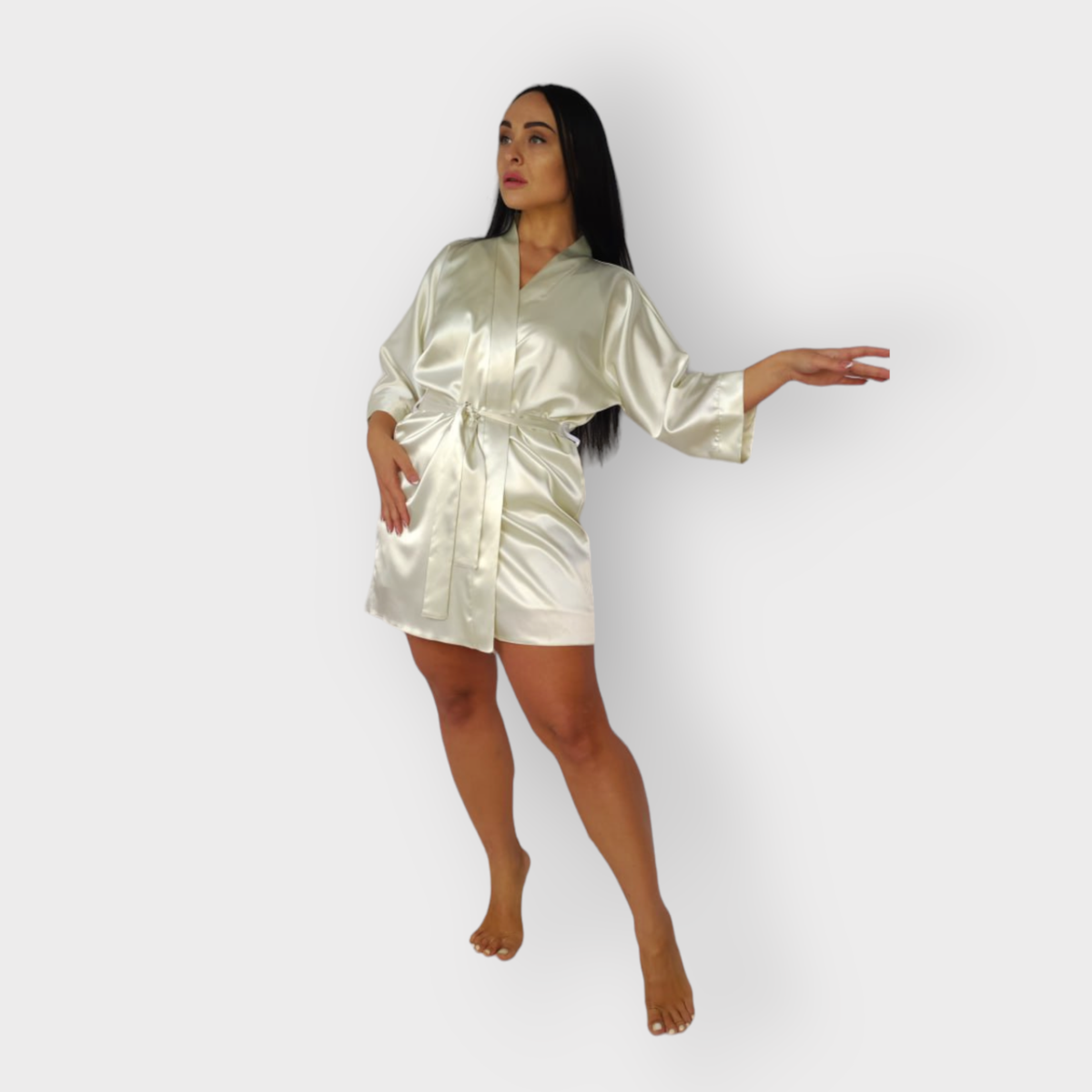 Халат жіночий атласний на запах виконаний із стрейч-атласу, що дає додаткову свободу руху.