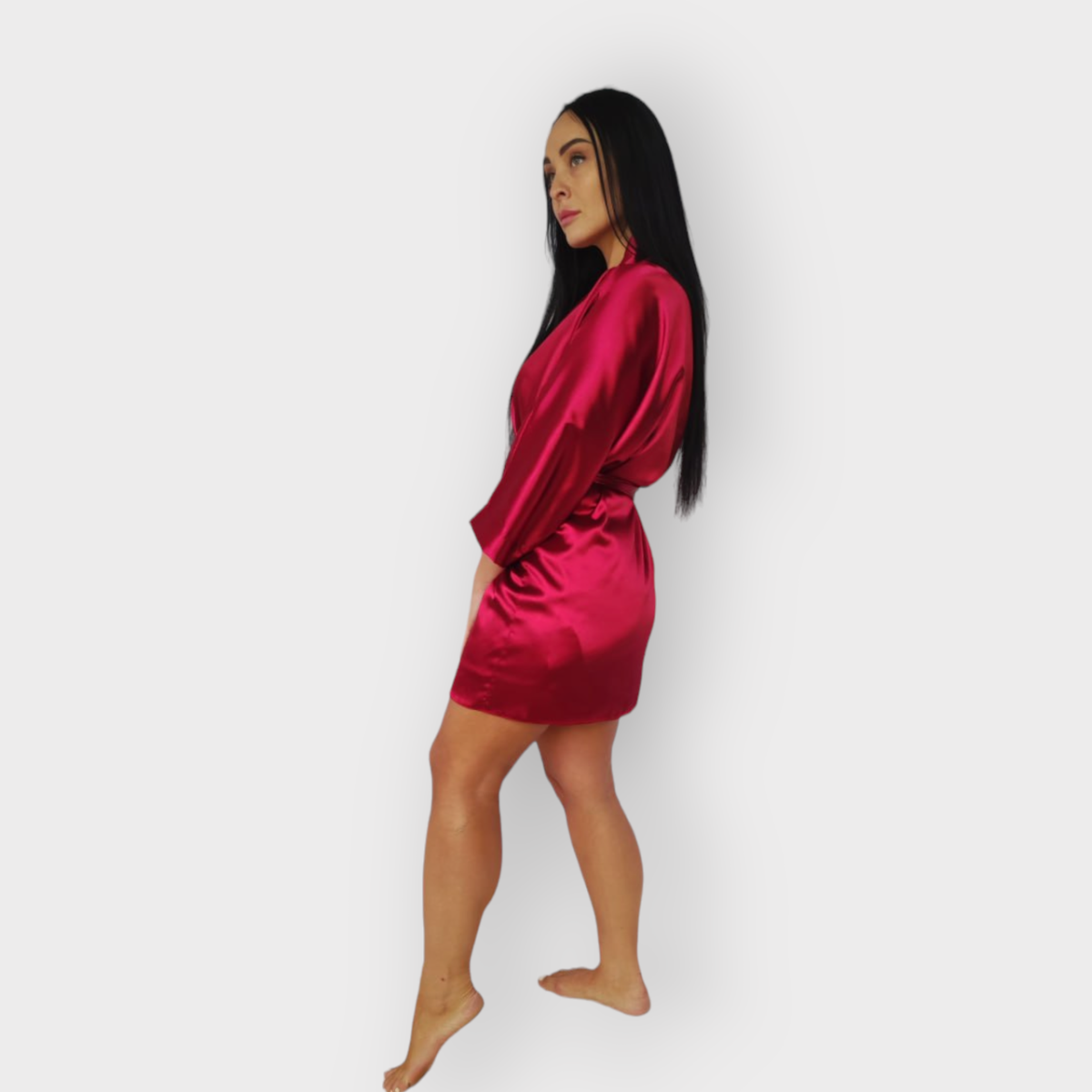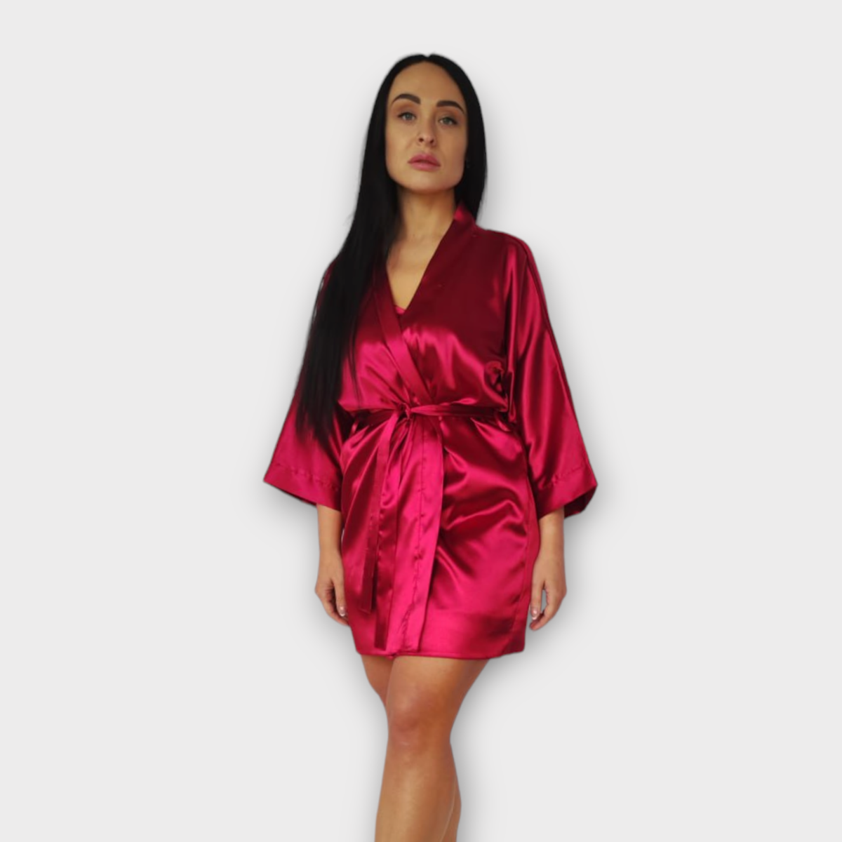 Халат жіночий виконаний із стрейч-атласу, що дає додаткову свободу руху.