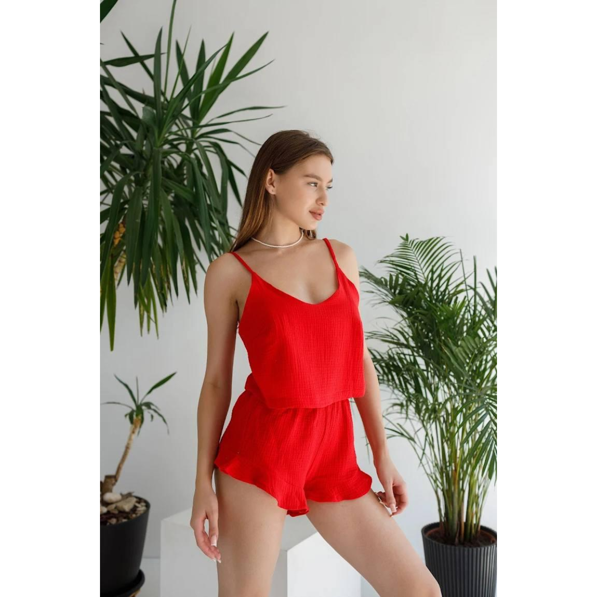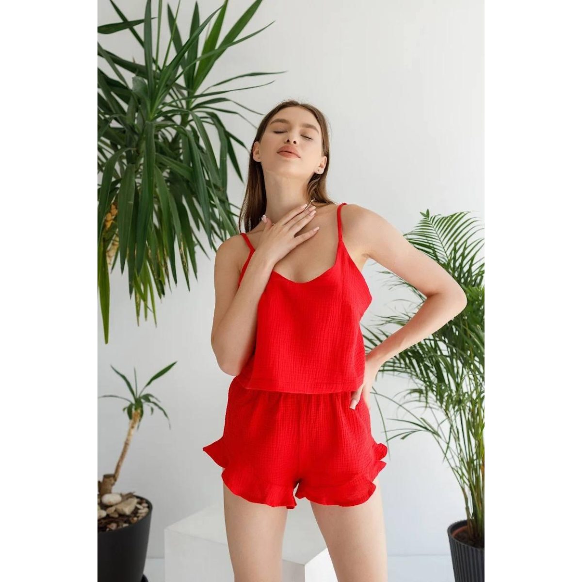 Жіноча чарівна піжама майка з шортами Червоний М