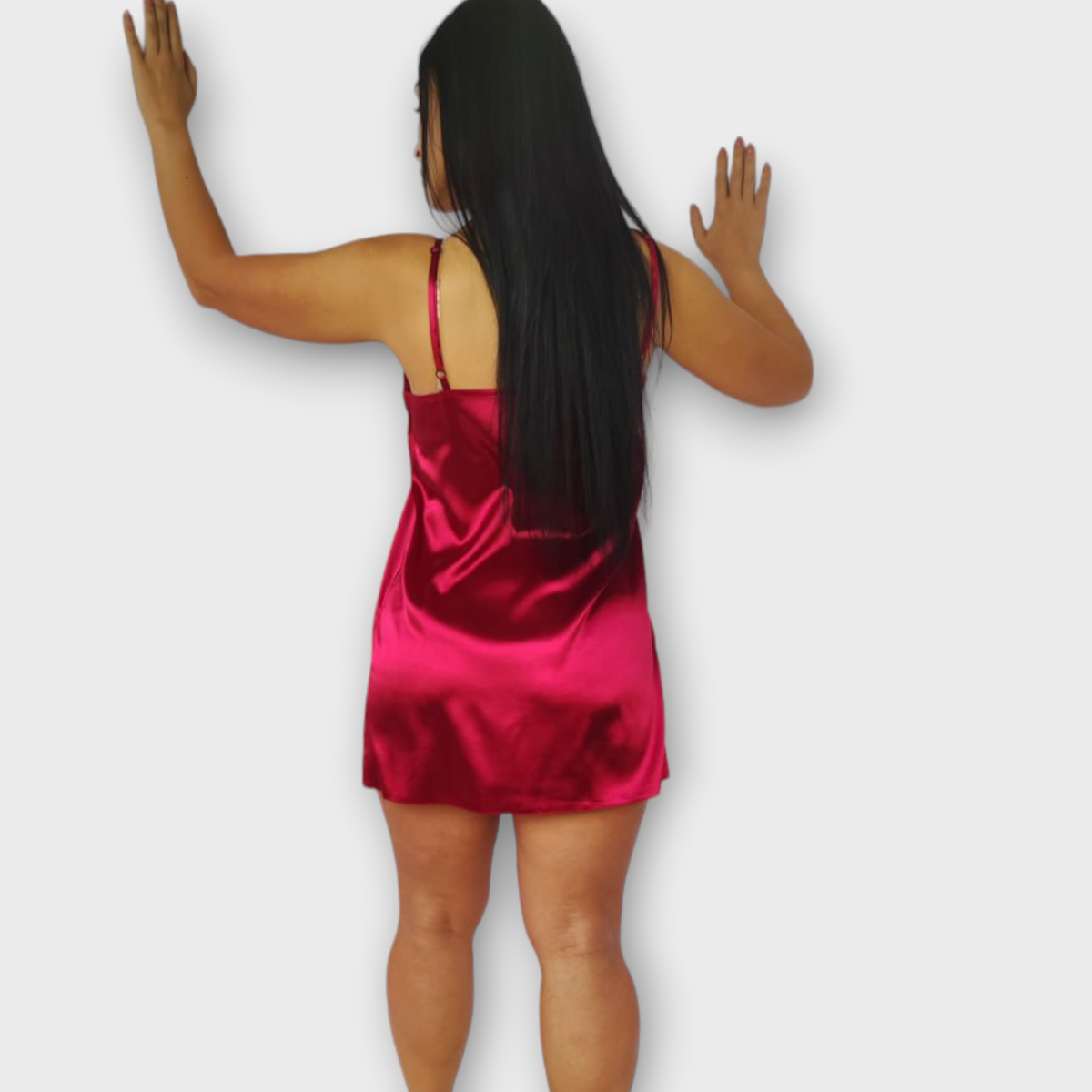 Жіноча нічна сорочка атласна на регульованих бретельках. Бордо, L