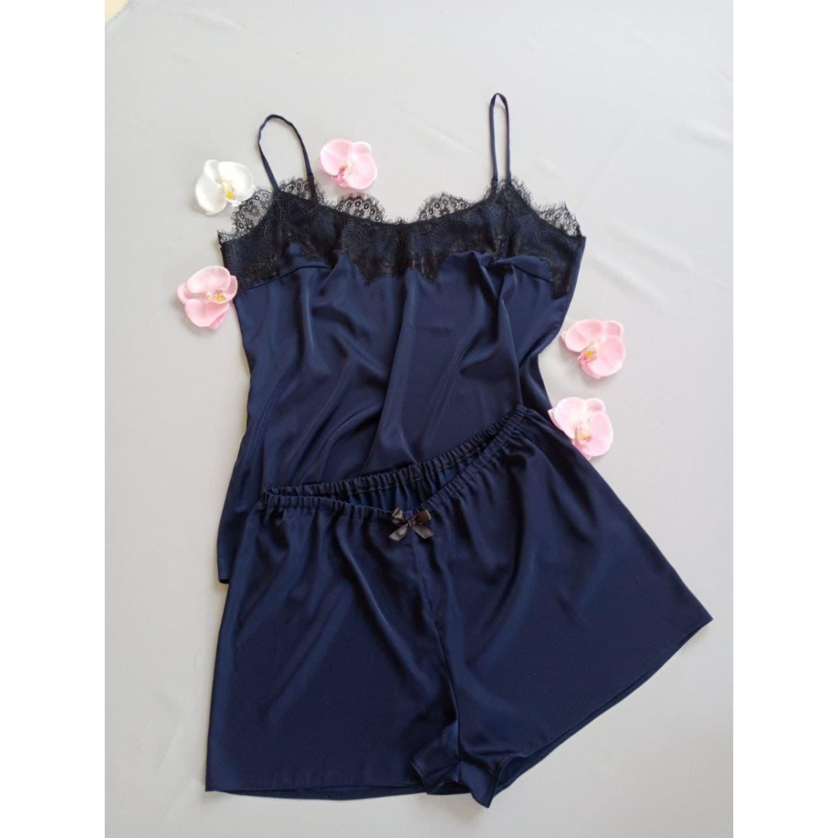 Оформлена французьким мереживом. Брительки на піжамі регулюються. Комплект шорти+ футболка. На пряму від виробника Україна.