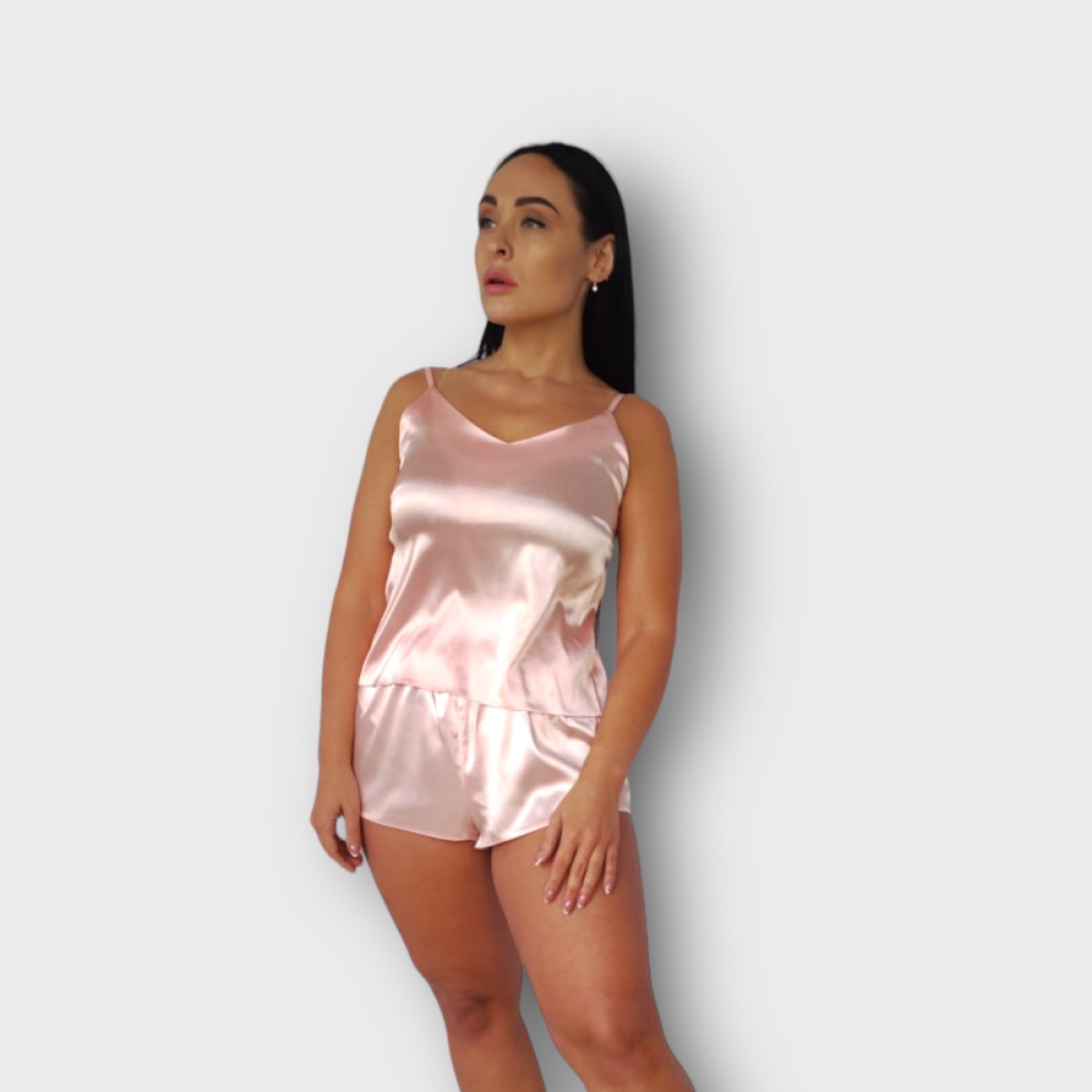 Піжама жіноча з шортами атласна, Пудровий, M