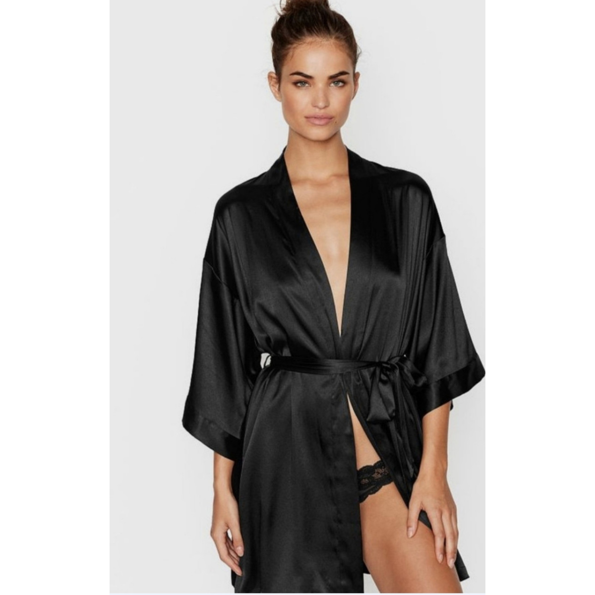 Комплект жіноча атласна нічна сорочка з халатом чорний M