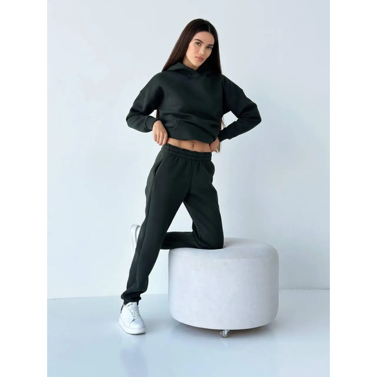 Жіночий спортивний теплий костюм оверсайз хакі XL