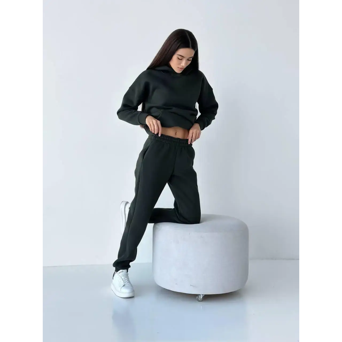 Жіночий спортивний теплий костюм оверсайз хакі XXL