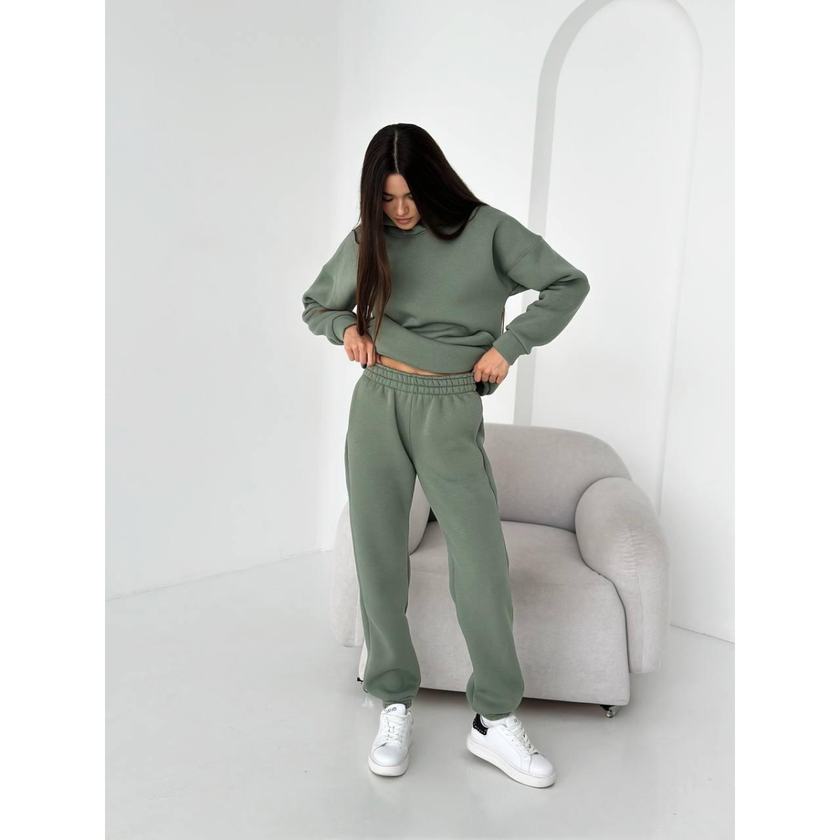 Жіночий спортивний теплий костюм оверсайз Фисташка XL