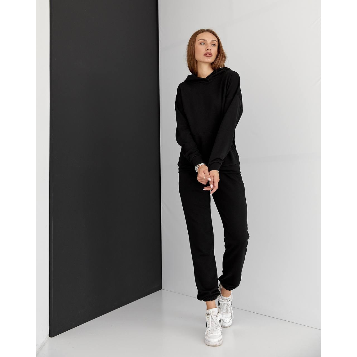 Жіночий спортивний теплий костюм оверсайз чорний, M