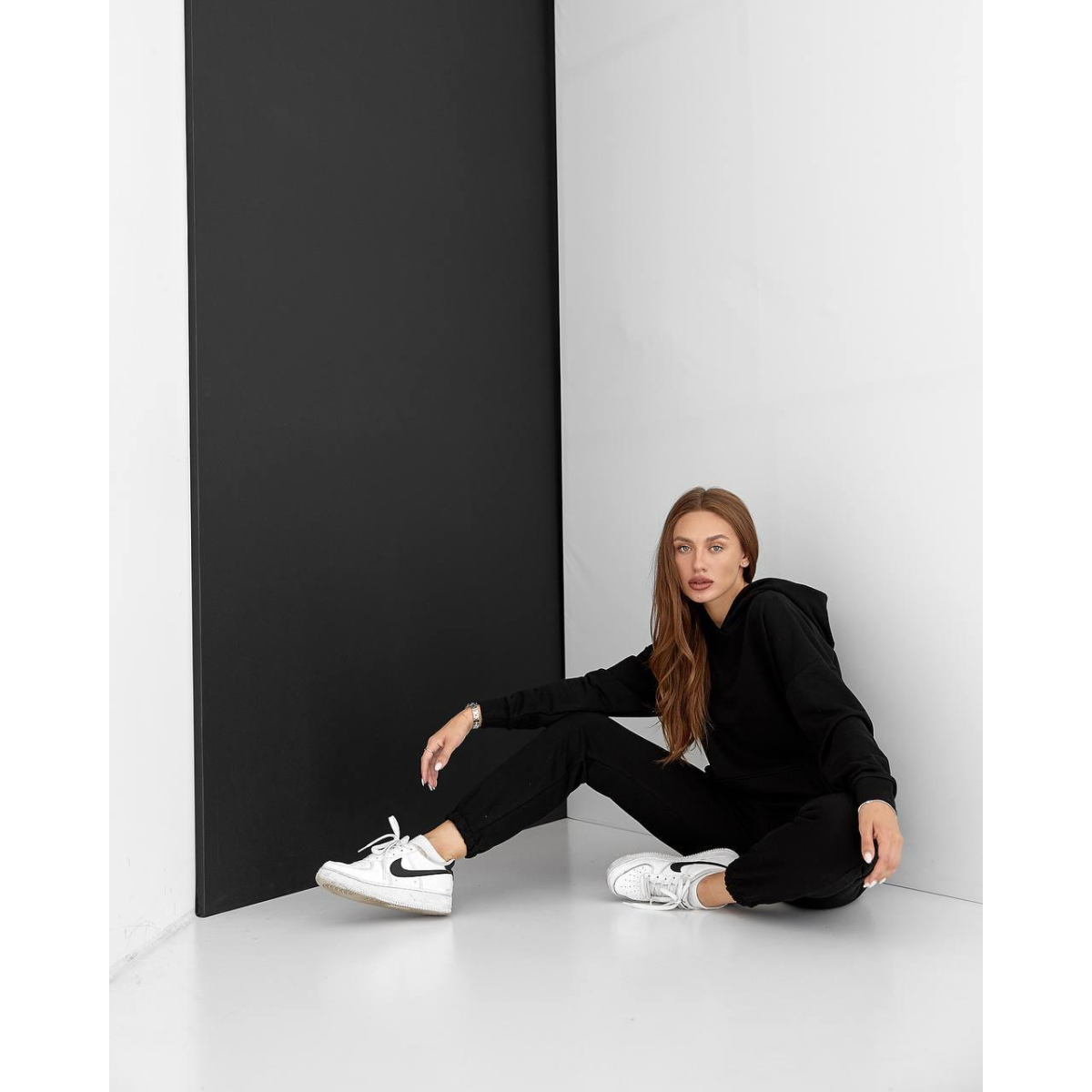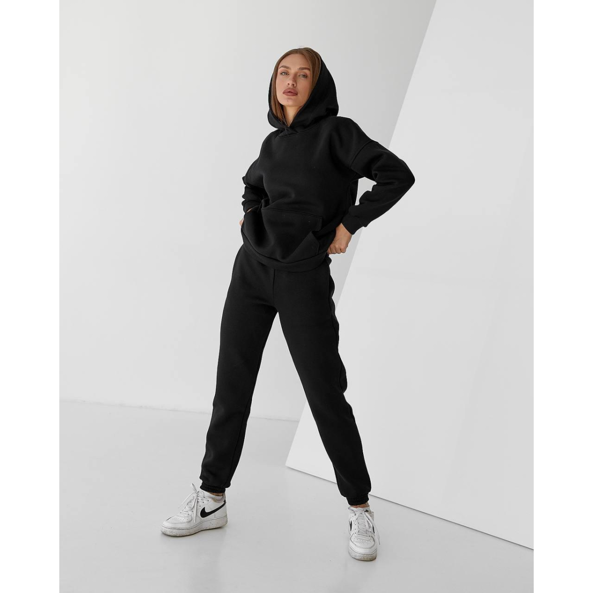 Жіночий спортивний теплий костюм оверсайз чорний, XXL