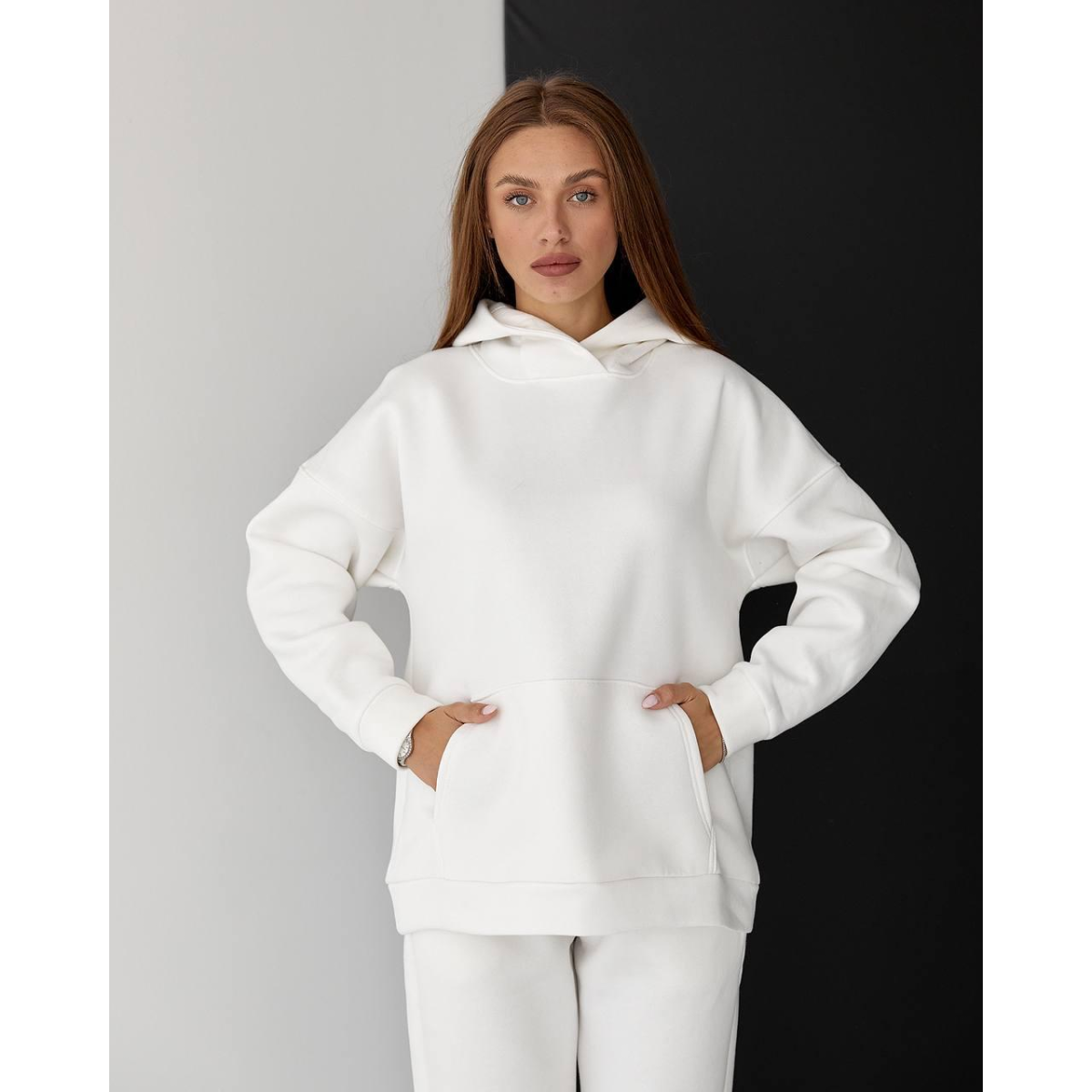 Жіночий спортивний теплий костюм оверсайз молочний, L