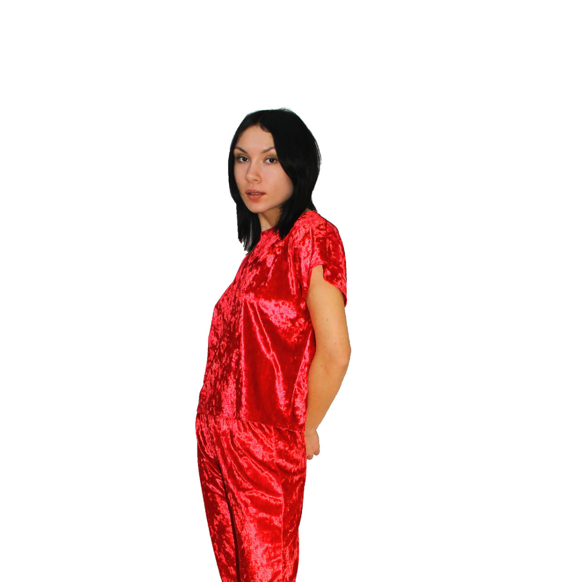 Жіночий комплект футболка з штанами, виконані з ніжного мармурового велюру.