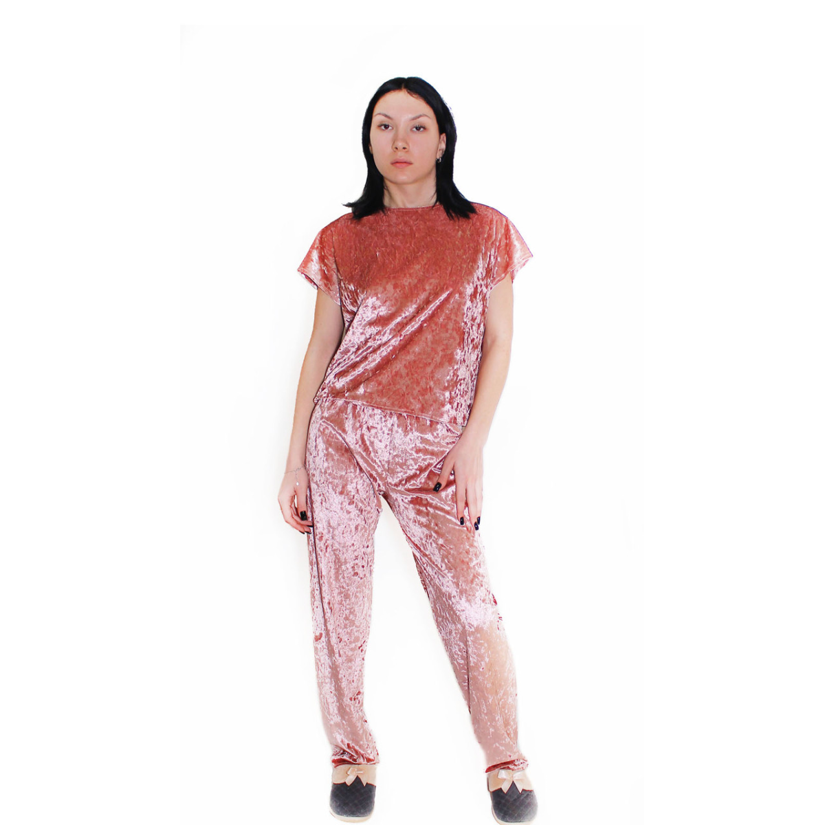 Жіночий комплект футболка з штанами, виконані з ніжного мармурового велюру.