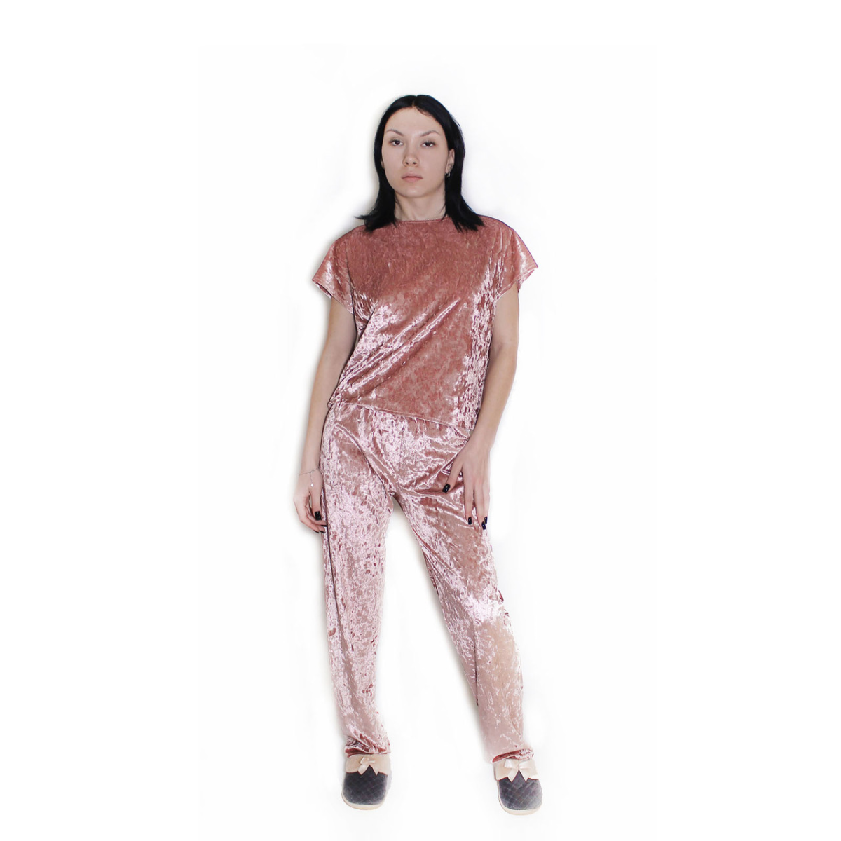 Жіночий комплект футболка з штанами, виконані з ніжного мармурового велюру.