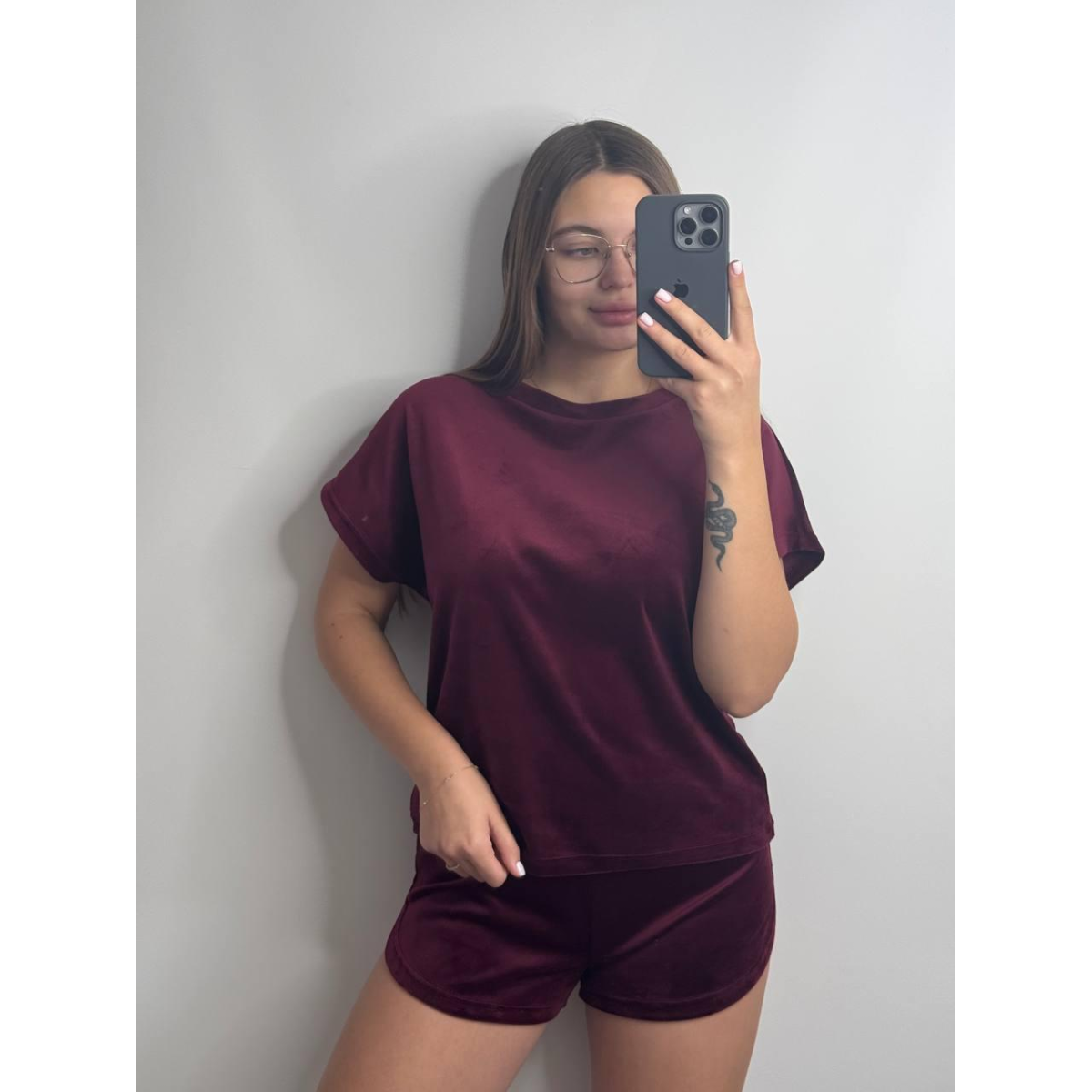Піжама футболка + шорти з плюшевого велюру Бордо, M