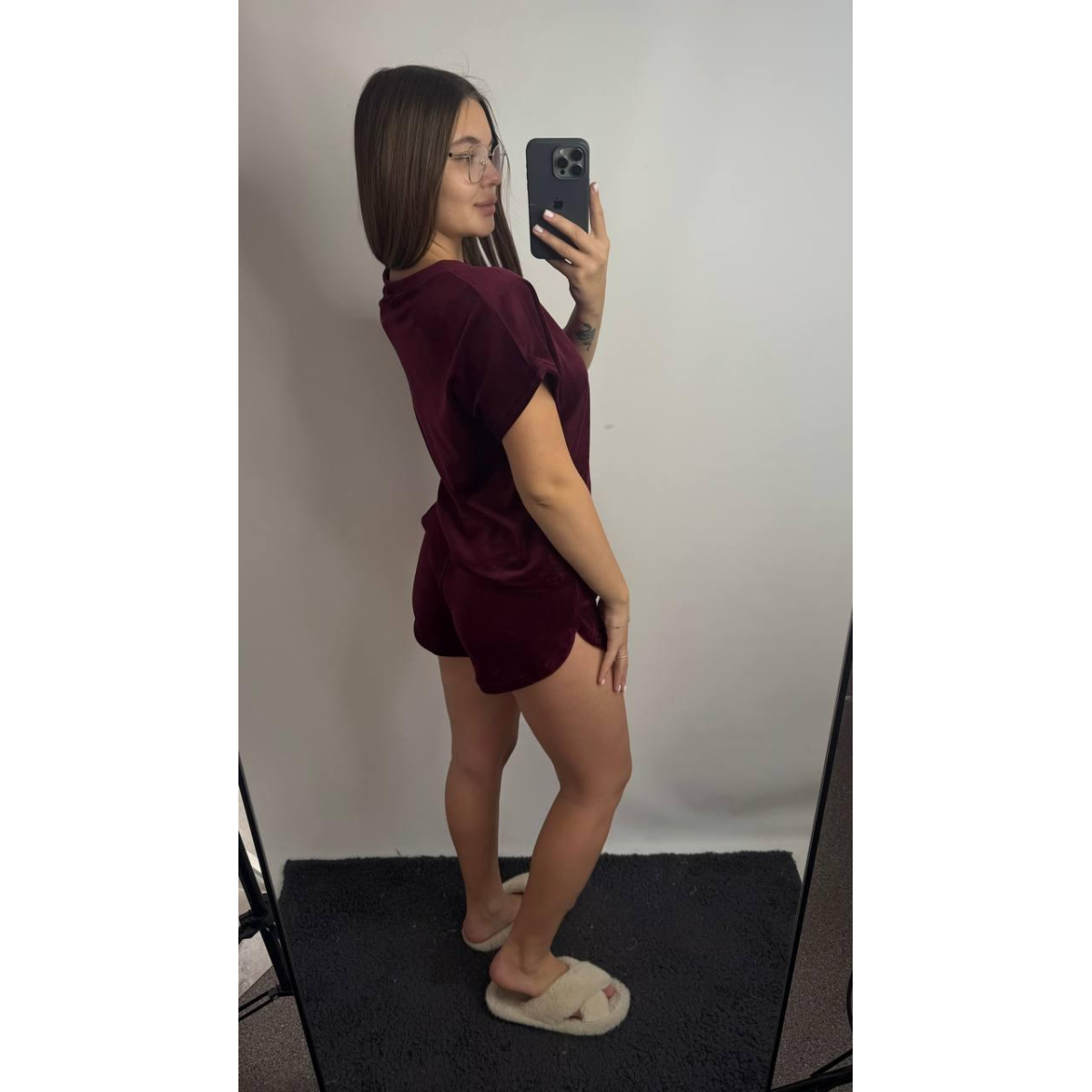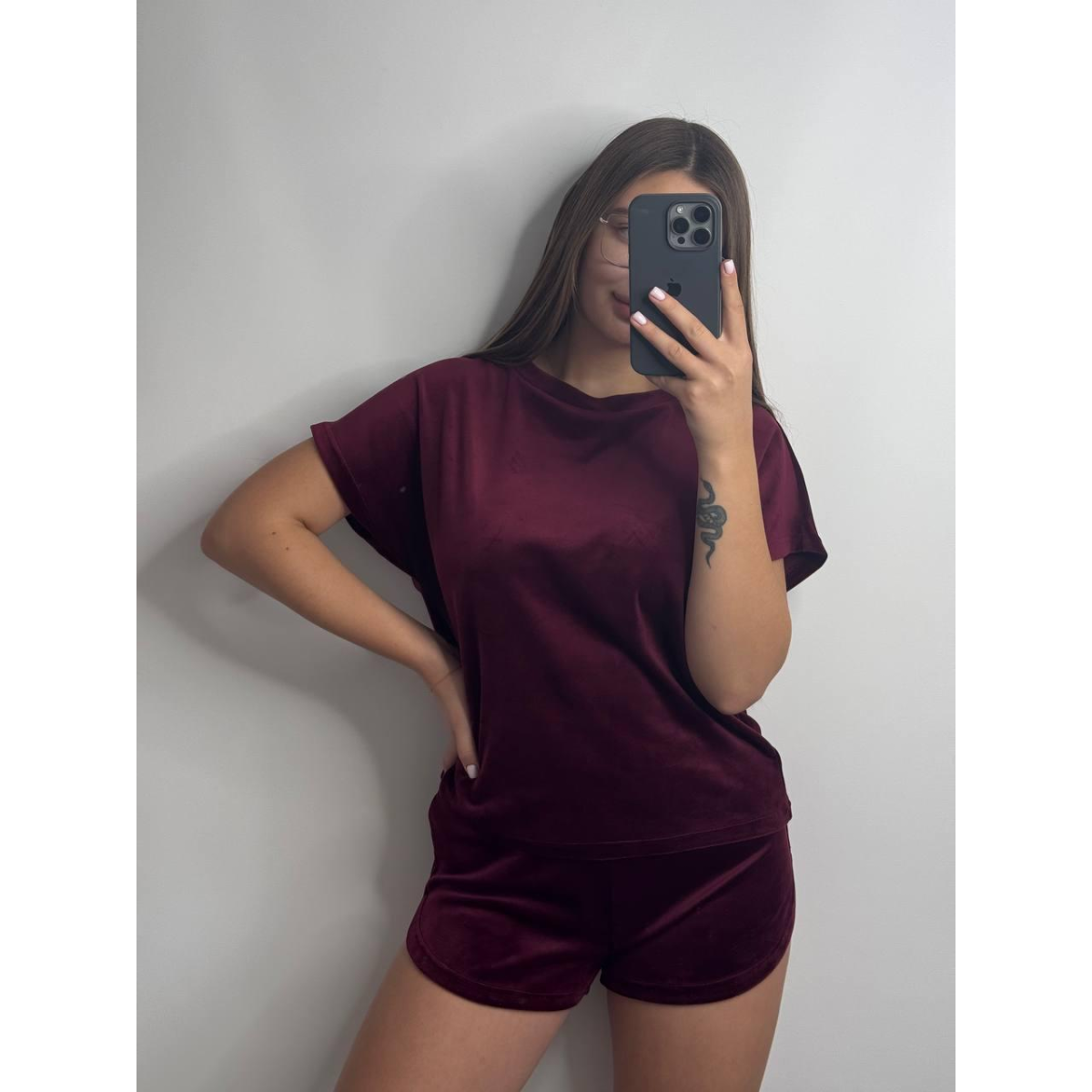 Піжама футболка + шорти з плюшевого велюру Бордо, L