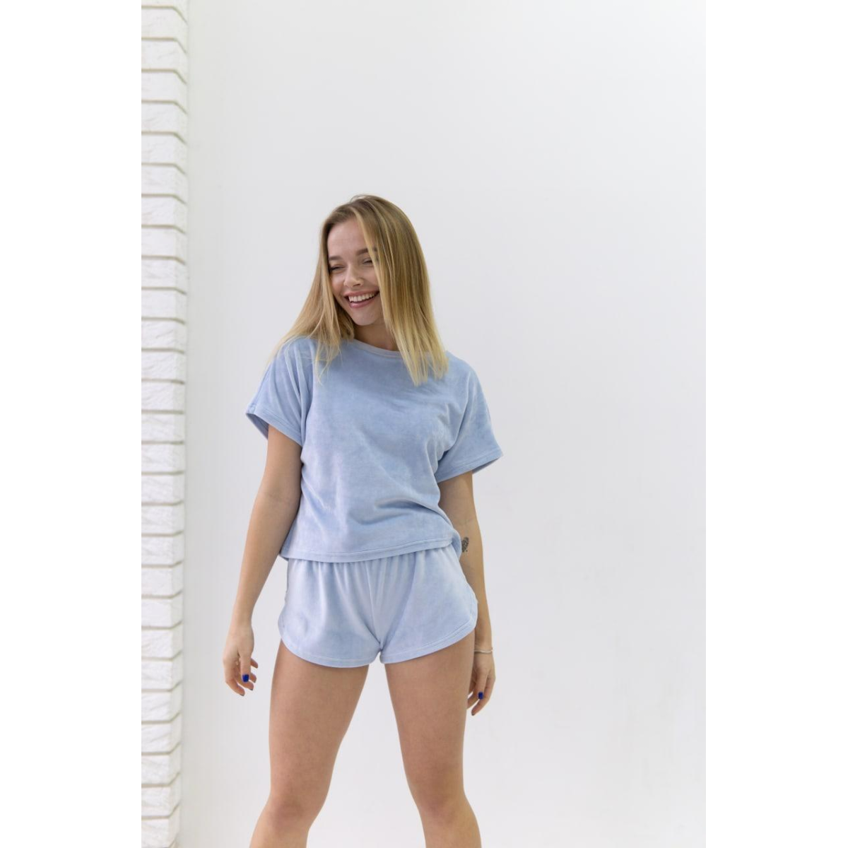 Піжама футболка + шорти з плюшевого велюру блакитний, L