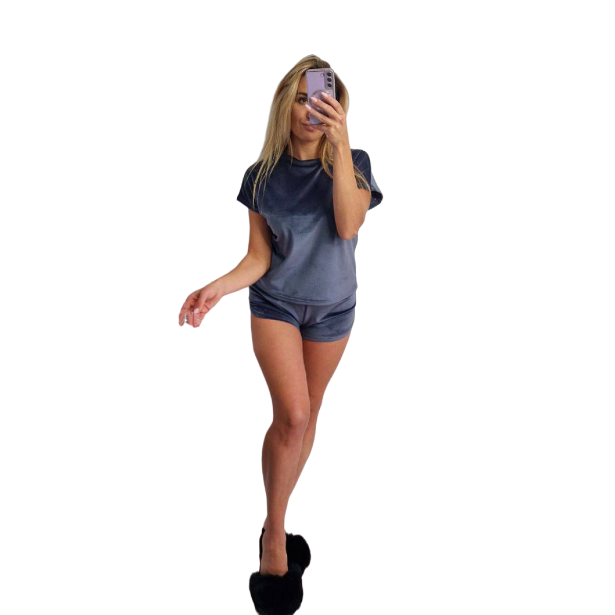 Піжама футболка + шорти з плюшевого велюру графіт, M