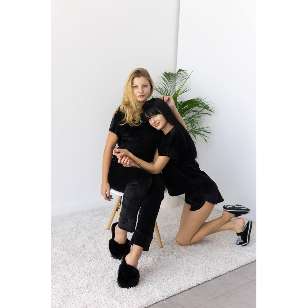 Піжама-комплект (футболка + шорти + штани) з плюшевого велюру чорний, M