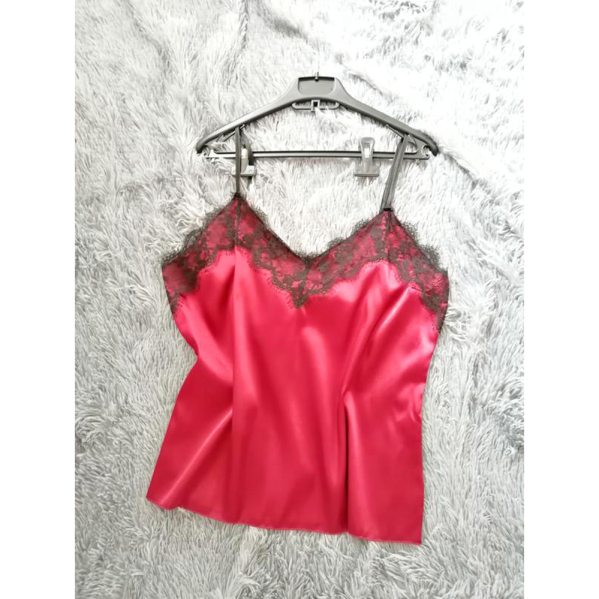 Базова майка жіноча з мереживом, атлас, червоний S