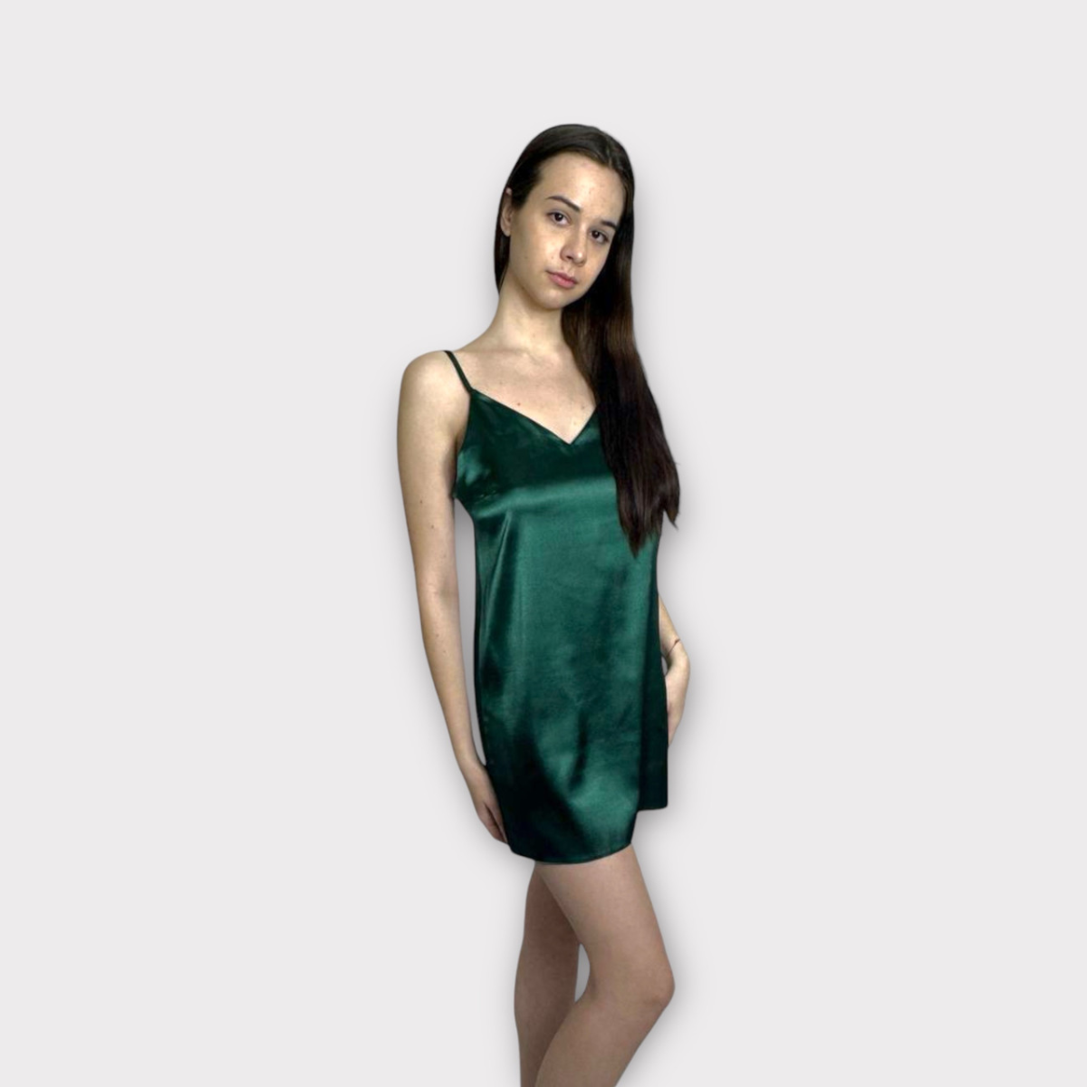 Атласна нічна сорочка м“яка і приємна до тіла, виконана з тонкого стрейч-атласу, що дає додаткову свободу руху з халатиком під пояс (всередині на зав“язках).