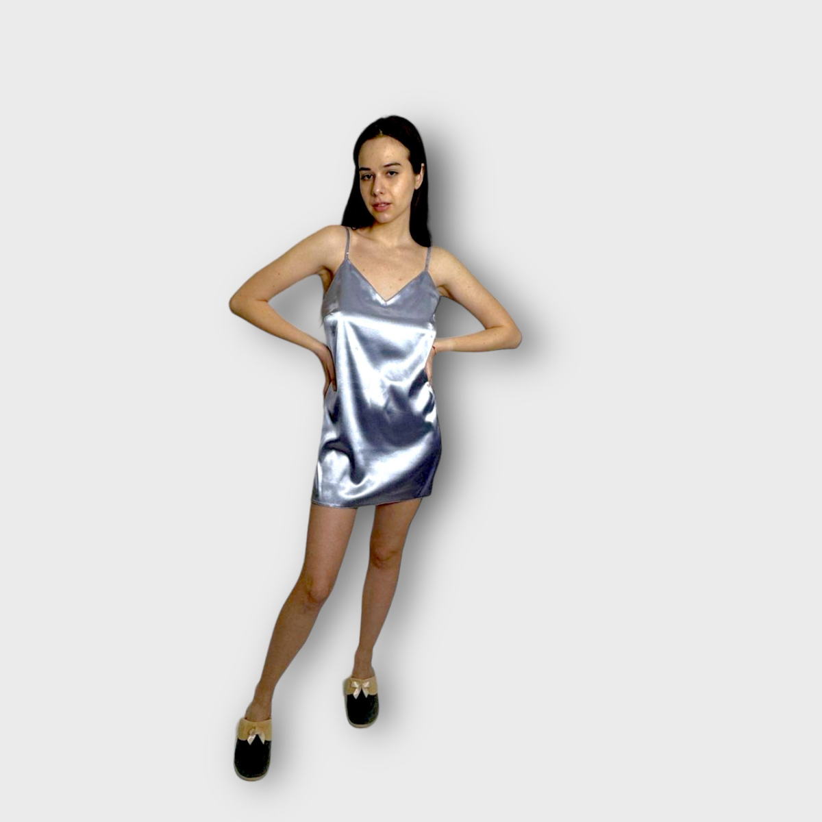 Атласна нічна сорочка м“яка і приємна до тіла, виконана з тонкого стрейч-атласу, що дає додаткову свободу руху з халатиком під пояс (всередині на зав“язках).