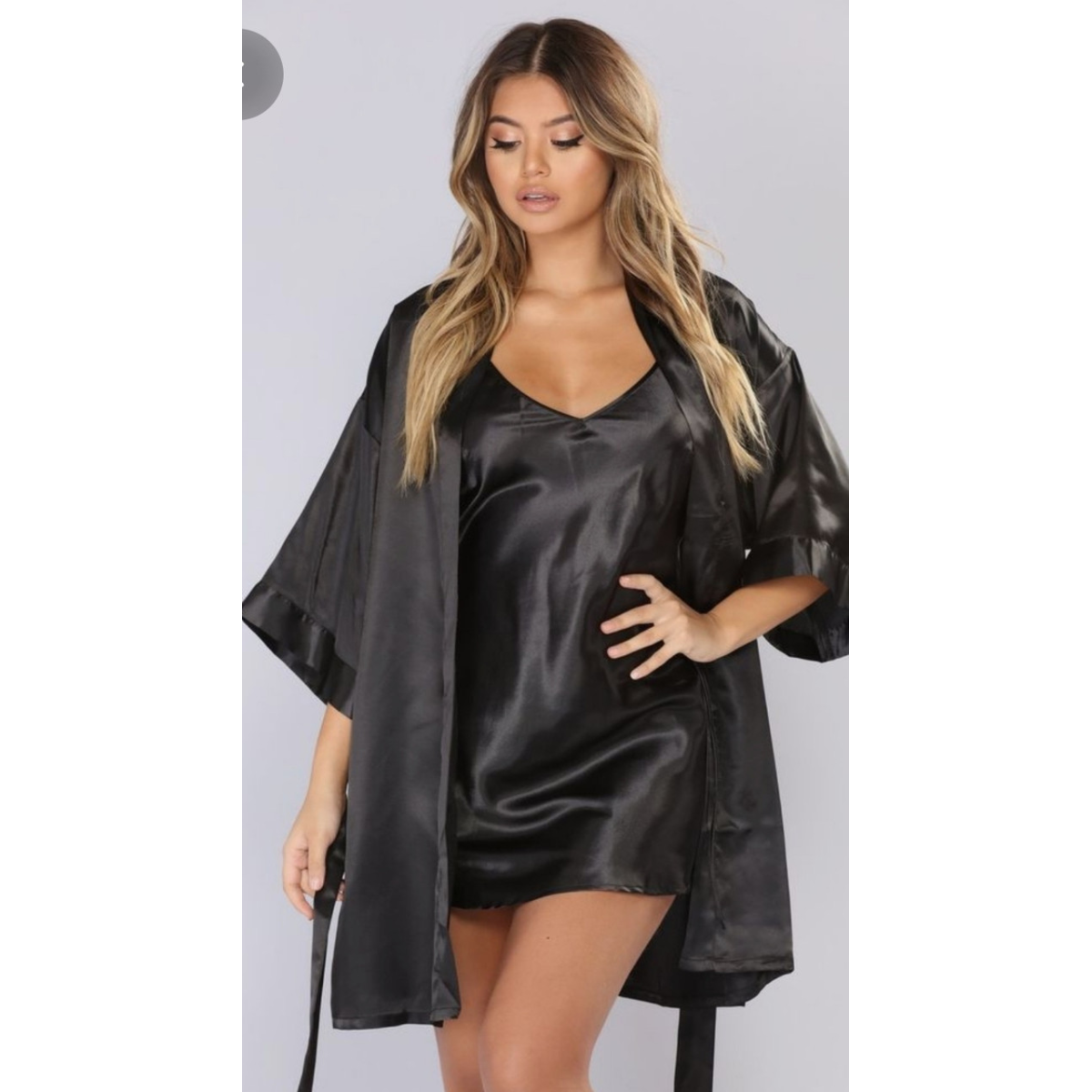 Атласна нічна сорочка м“яка і приємна до тіла, виконана з тонкого стрейч-атласу, що дає додаткову свободу руху з халатиком під пояс (всередині на зав“язках).