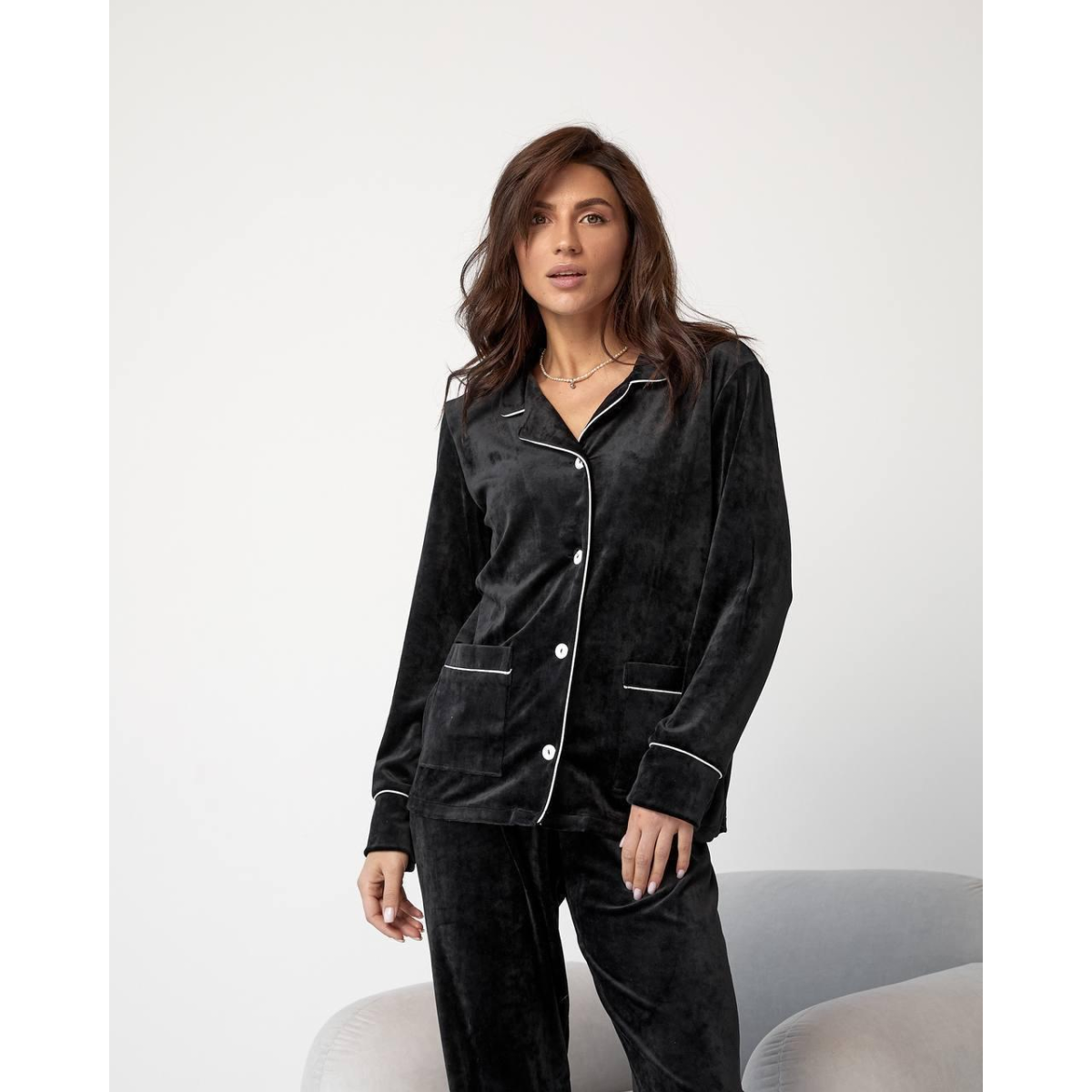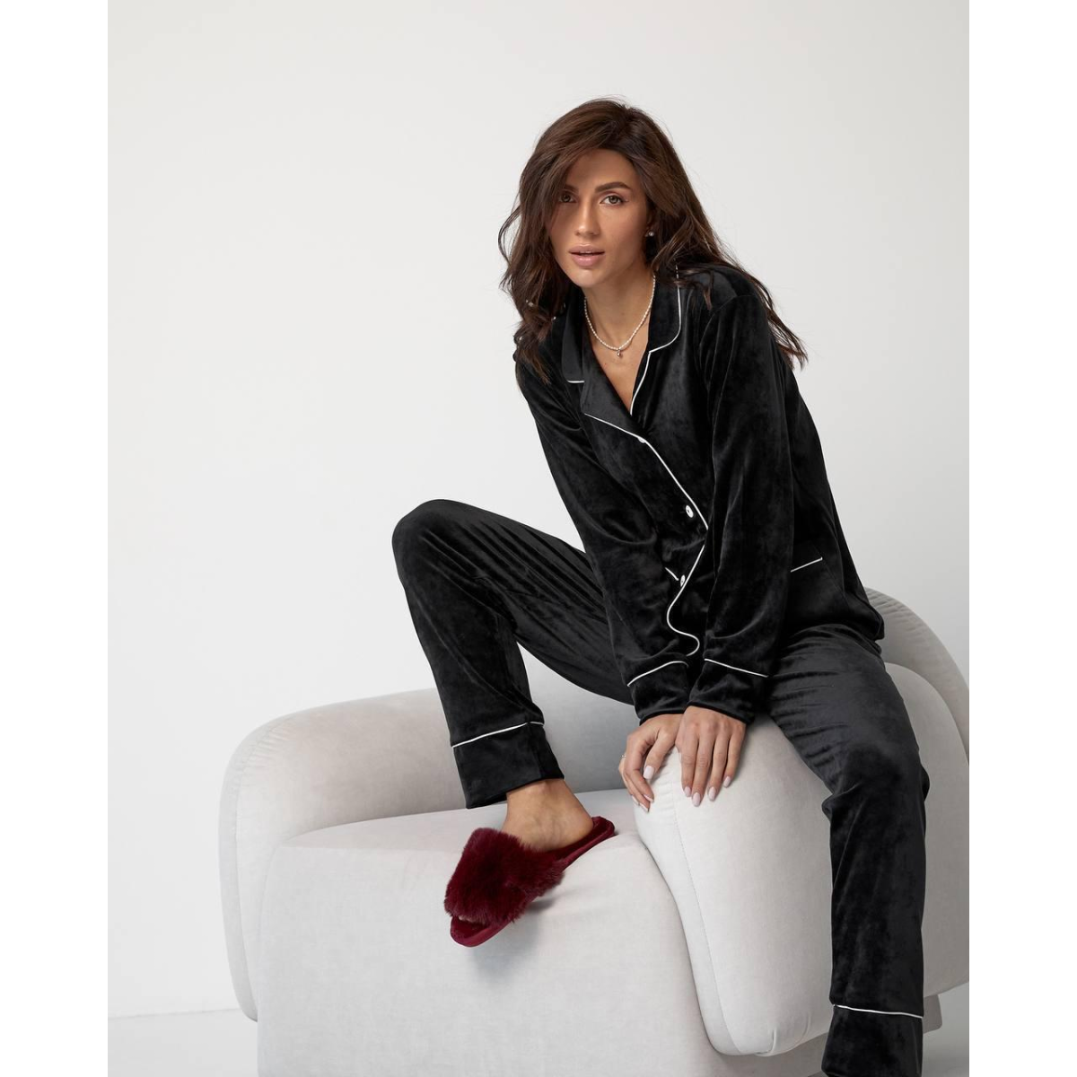 Костюм із плюшевого велюру на ґудзиках із двома кишенями. Чорний, S