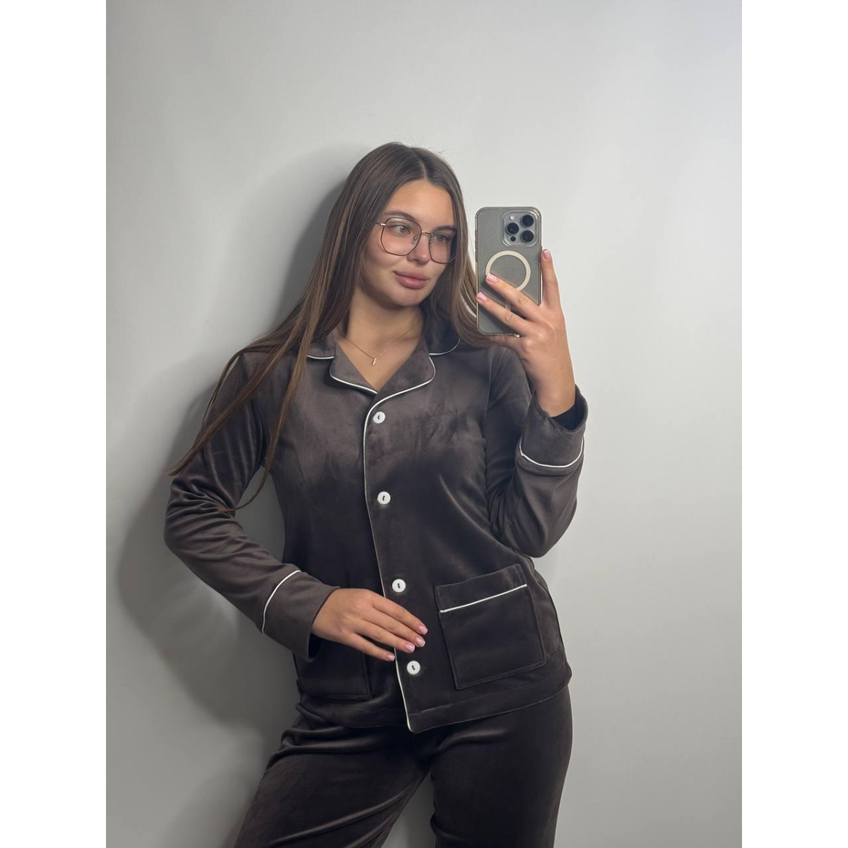 Костюм з плюшевого велюру на ґудзиках із двома кишенями. Шоколад, S