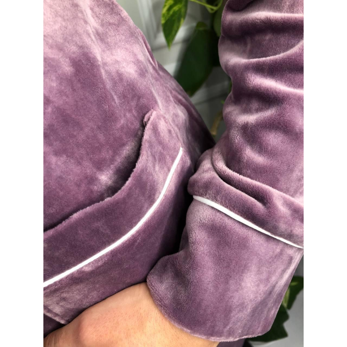 Костюм із плюшевого велюру на ґудзиках із двома кишенями. Ліловий, XS