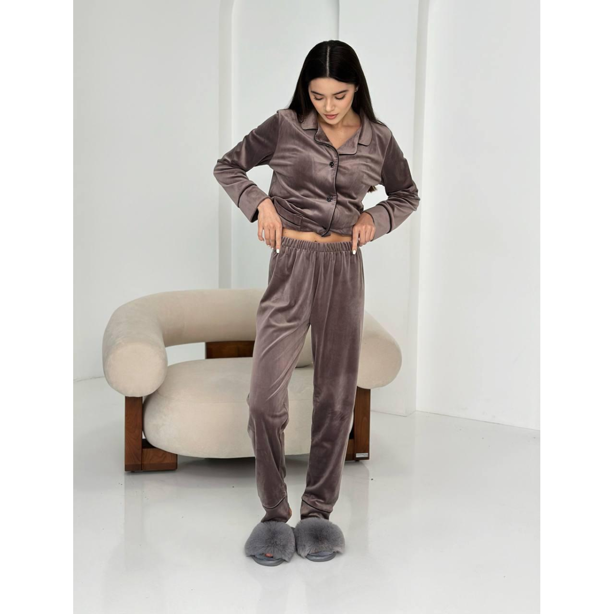 Костюм із плюшевого велюру на ґудзиках із двома кишенями. Коричневий, L
