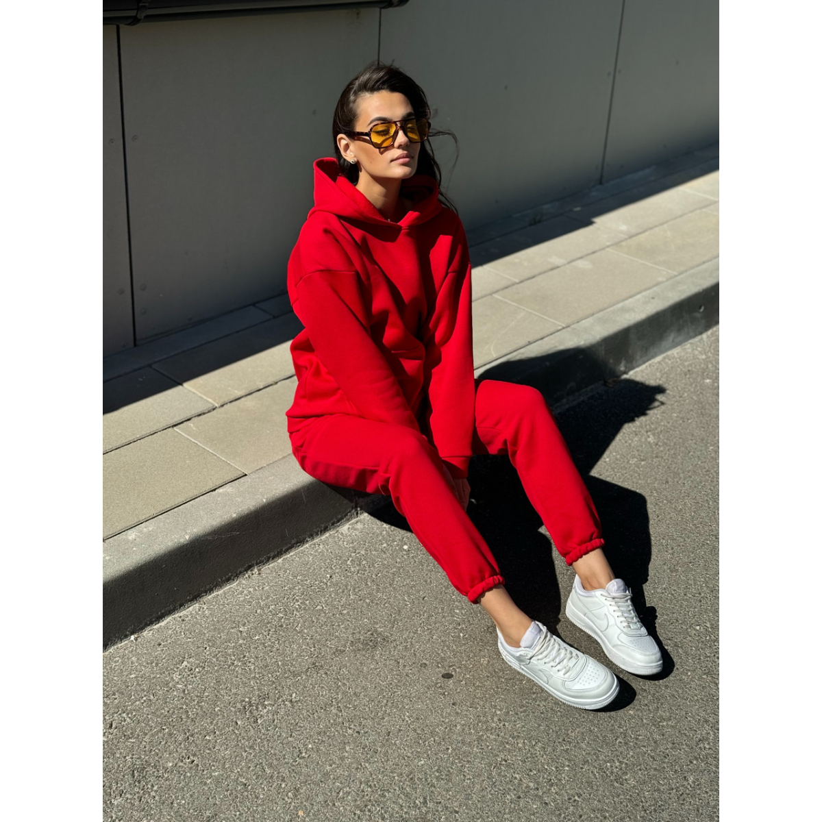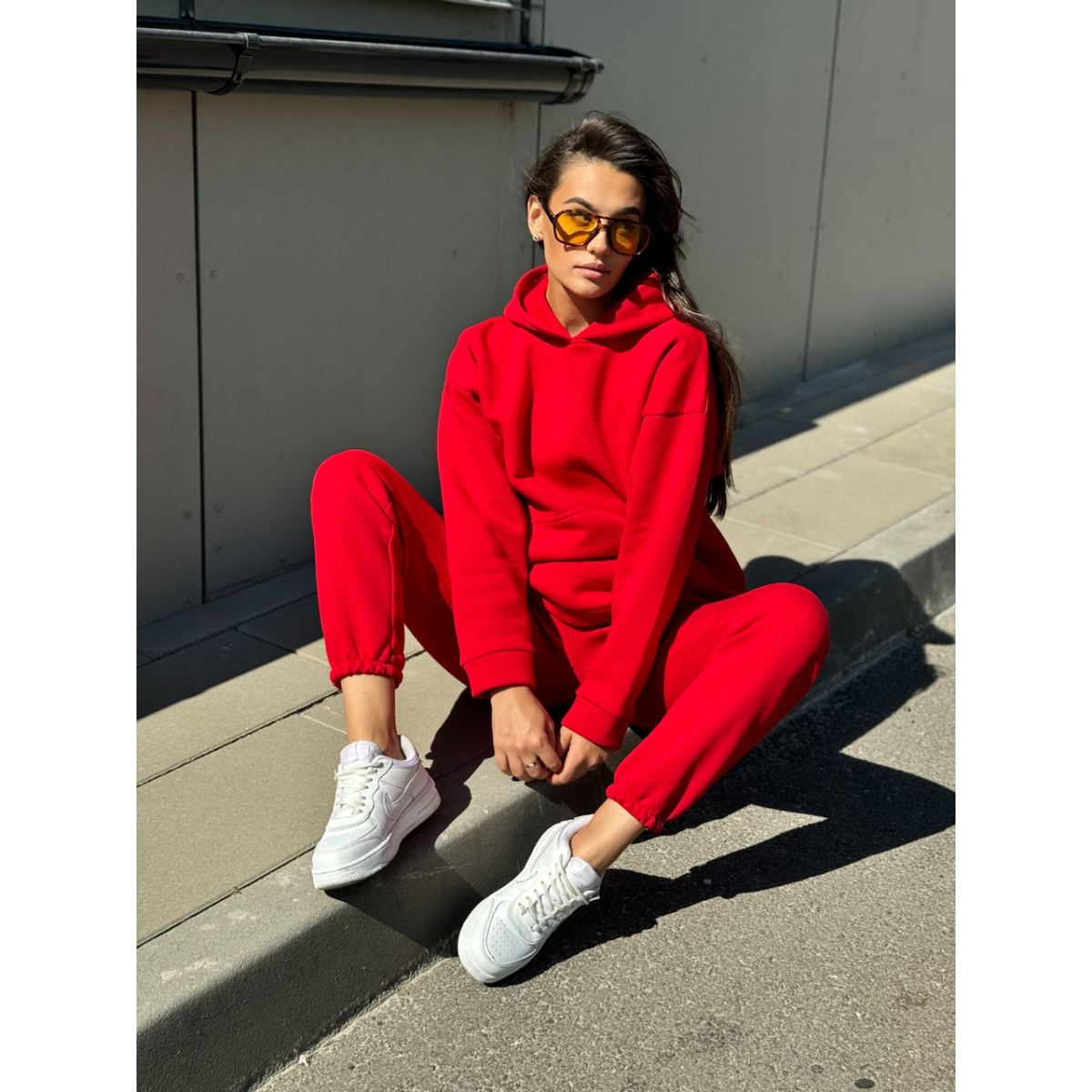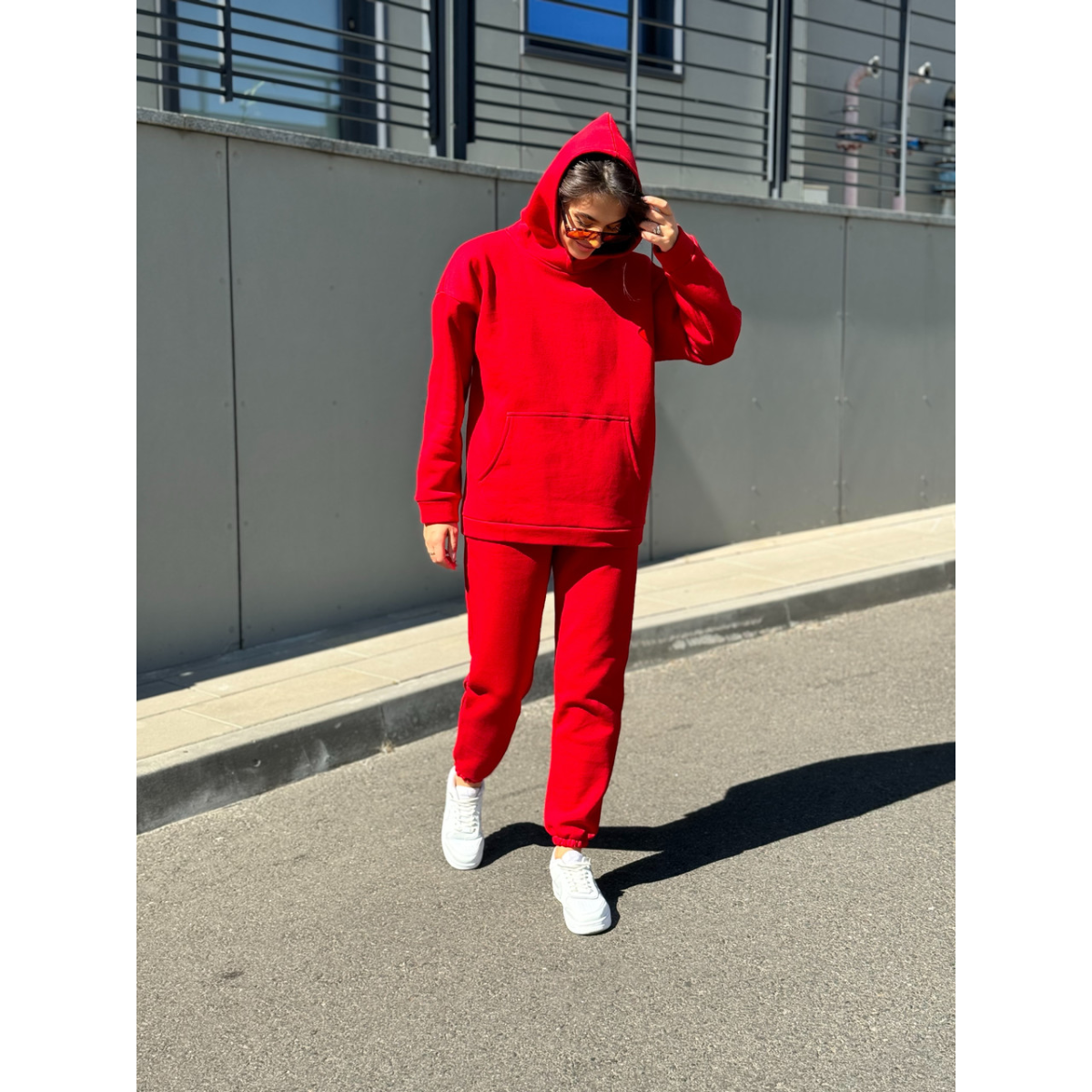 Худі-кенгуру із глибоким капюшоном. Штани джогери на гумці, без кишень та прошитою широкою гумкою на поясі.