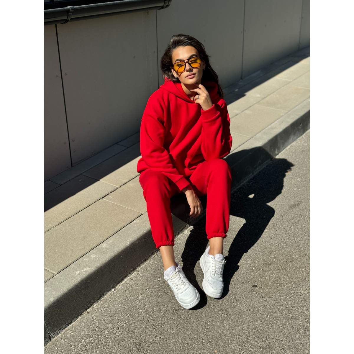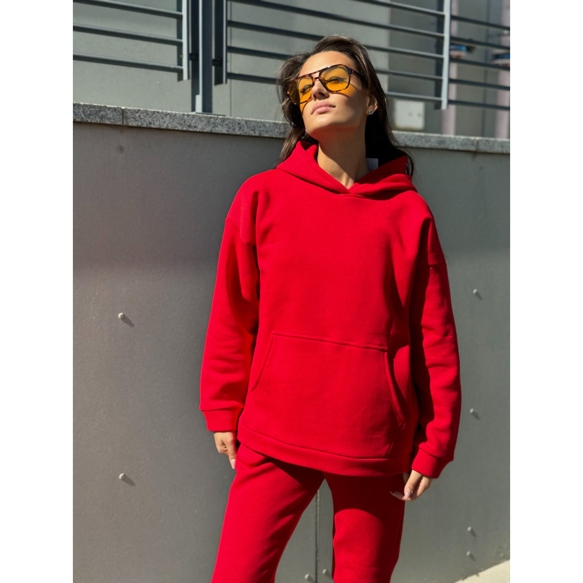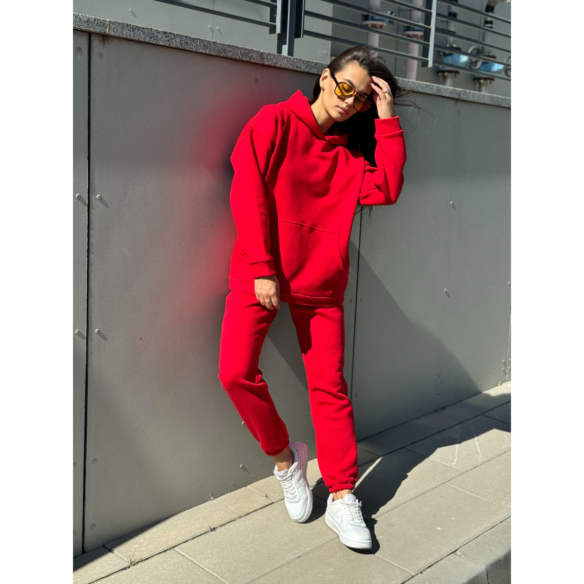 Худі-кенгуру із глибоким капюшоном. Штани джогери на гумці, без кишень та прошитою широкою гумкою на поясі.