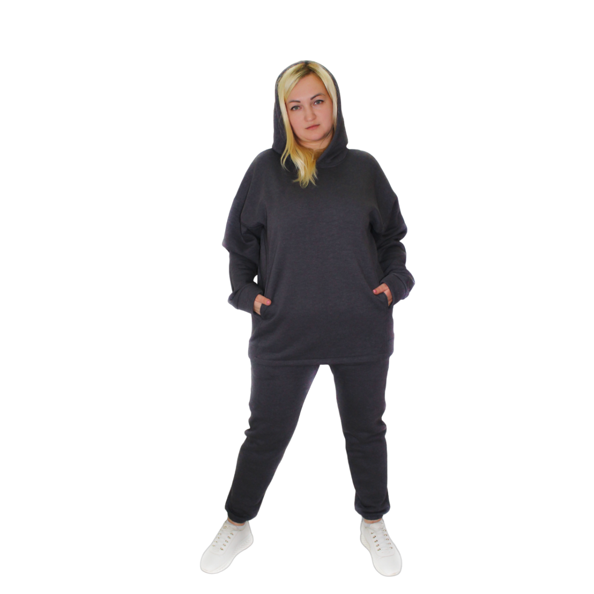 Жіночий спортивний теплий костюм на флісі, батал Сірий, р.2XL/3XL