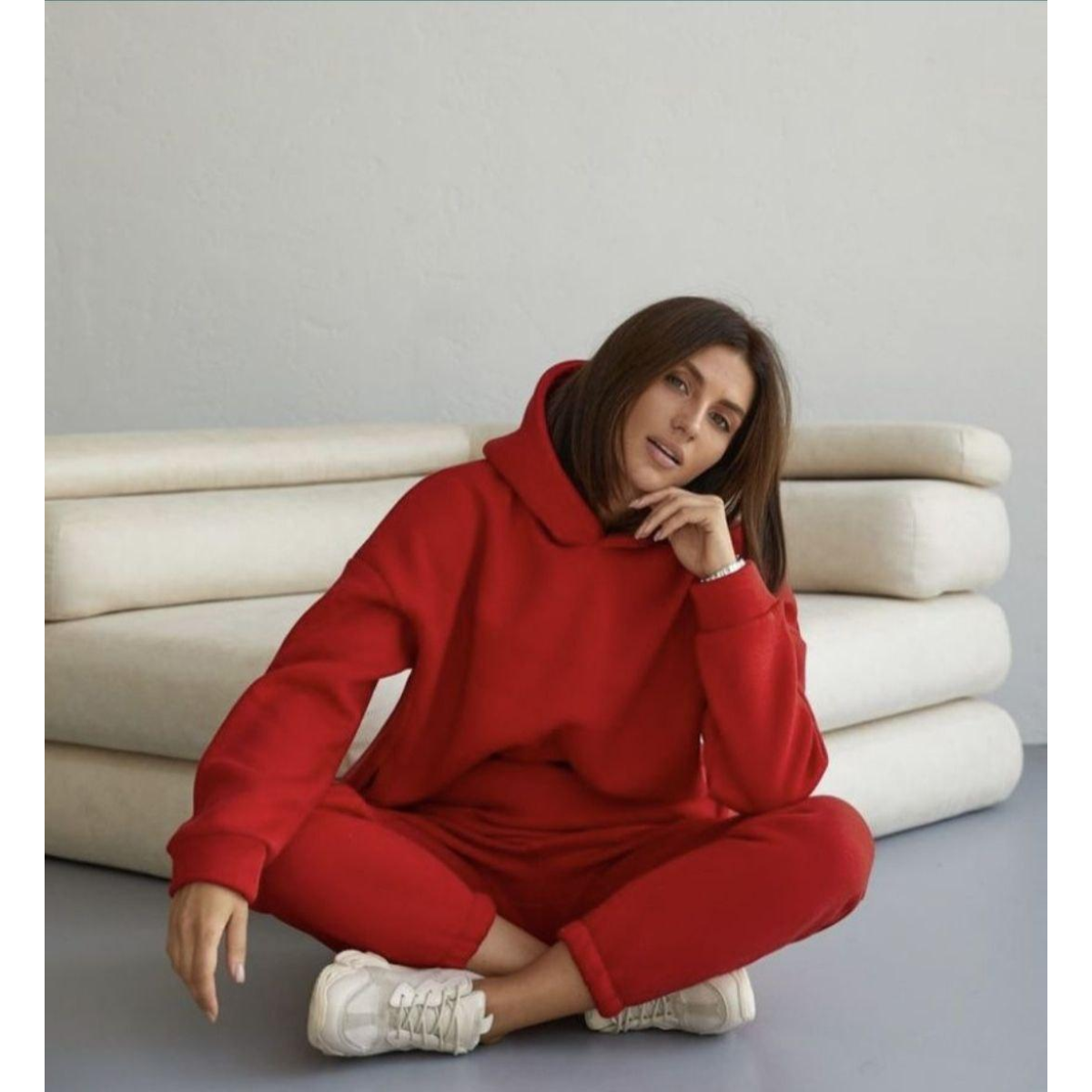 Жіночий спортивний теплий костюм на флісі, батал Червоний, 4XL/5XL