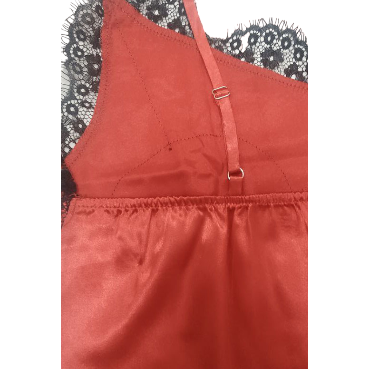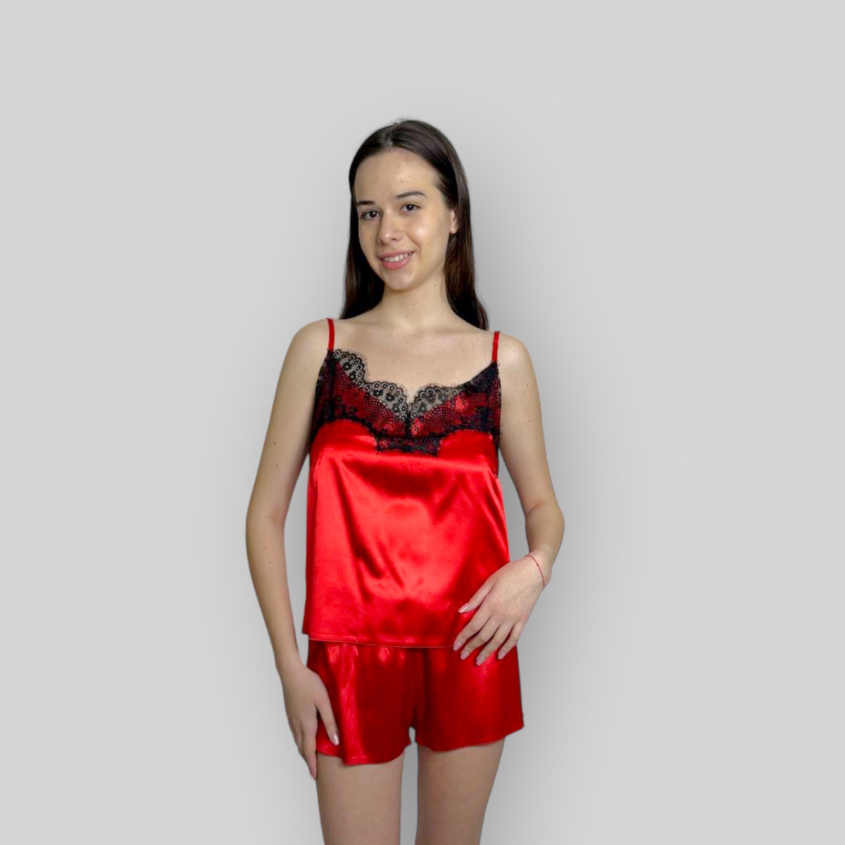 Піжама жіноча атласна з мереживом майка + шорти, червона M/L