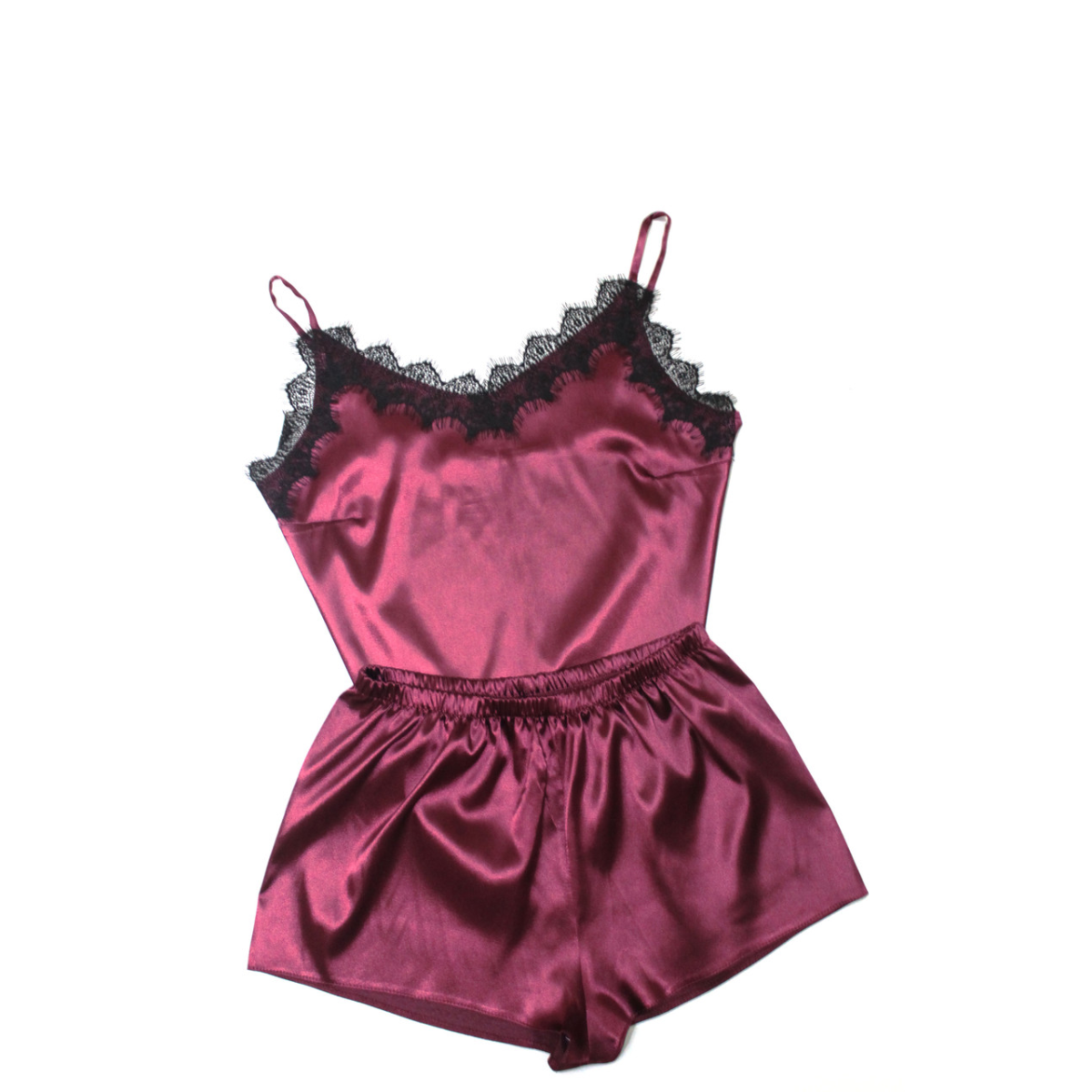 Піжама жіноча атласна з мереживом майка + шорти, бордо