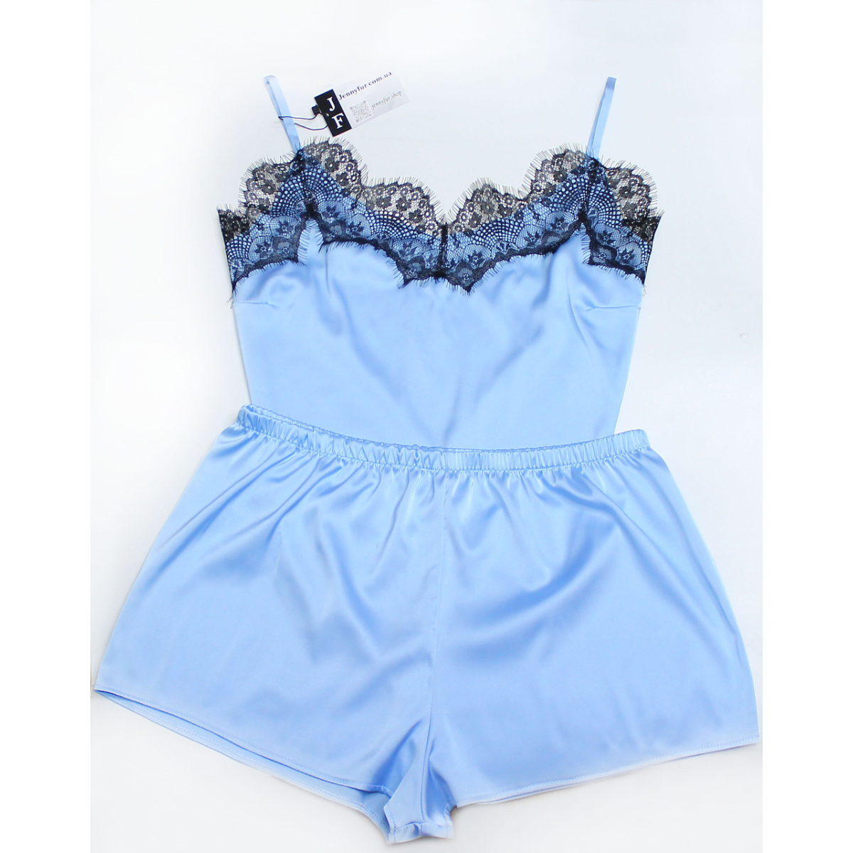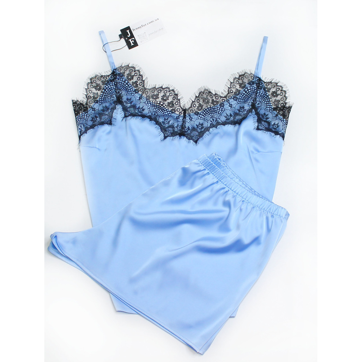 Оформлена французьким мереживом. Бретели на піжамі регулюються. Комплект шорти+майка. Напряму від виробника Україна не Китай.