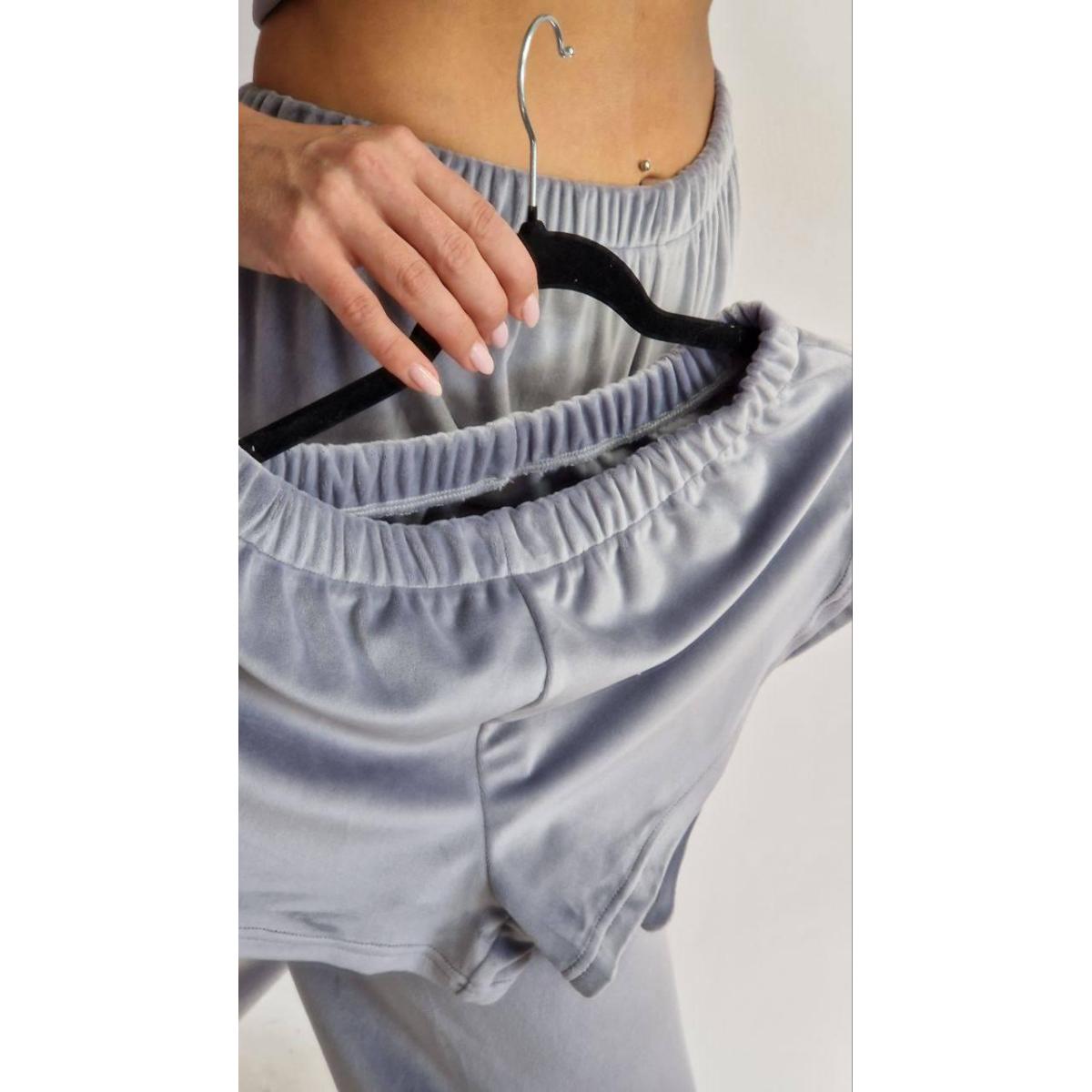 Піжама-комплект (футболка+шорти+штани) з плюшевого велюру, Сірий, M