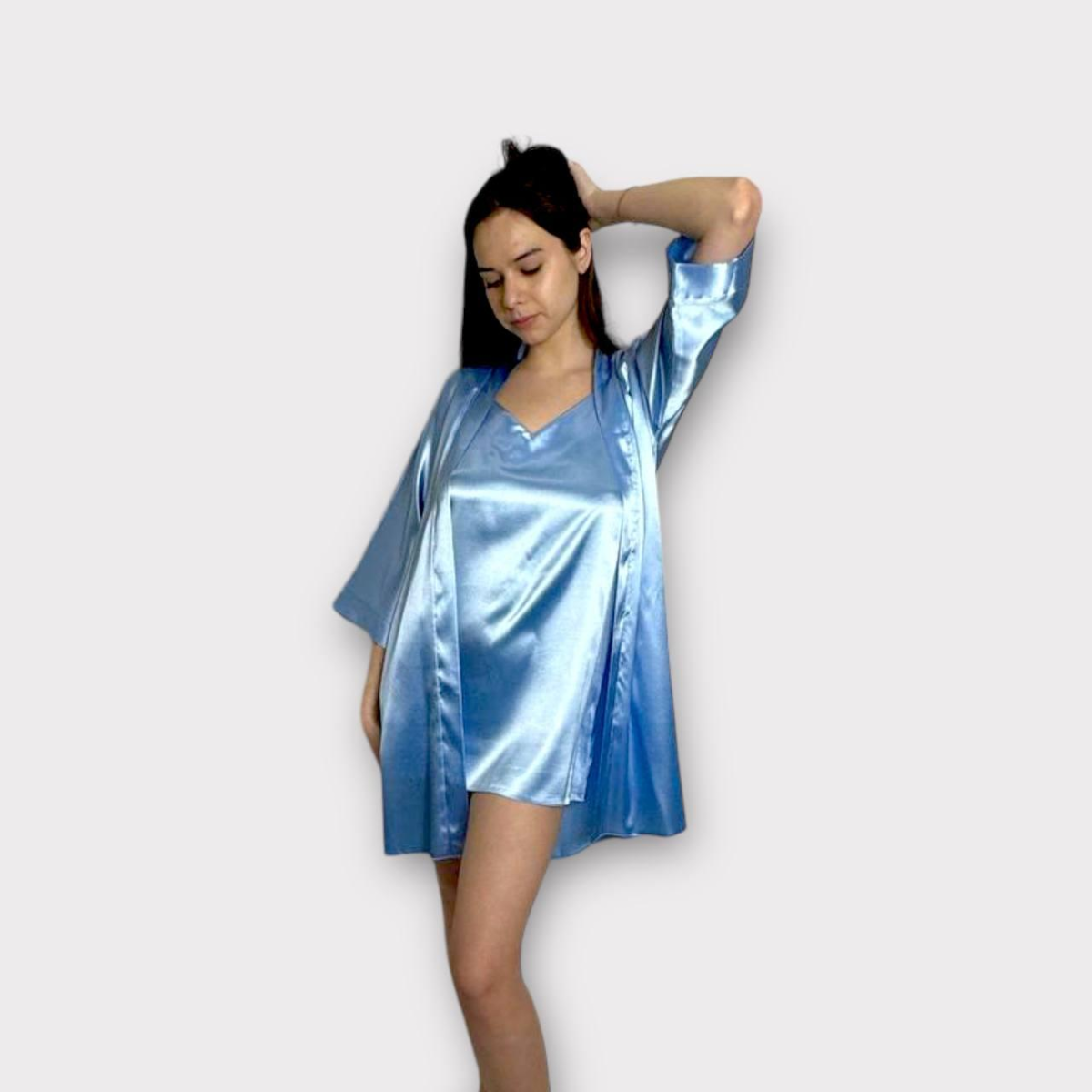 Атласна нічна сорочка м“яка і приємна до тіла, виконана з тонкого стрейч-атласу, що дає додаткову свободу руху з халатиком під пояс (всередині на зав“язках).