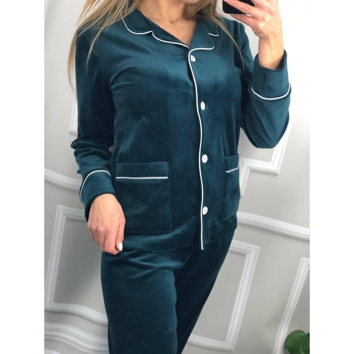 Костюм з плюшевого велюру на ґудзиках із двома кишенями. Смарагдовий, XS