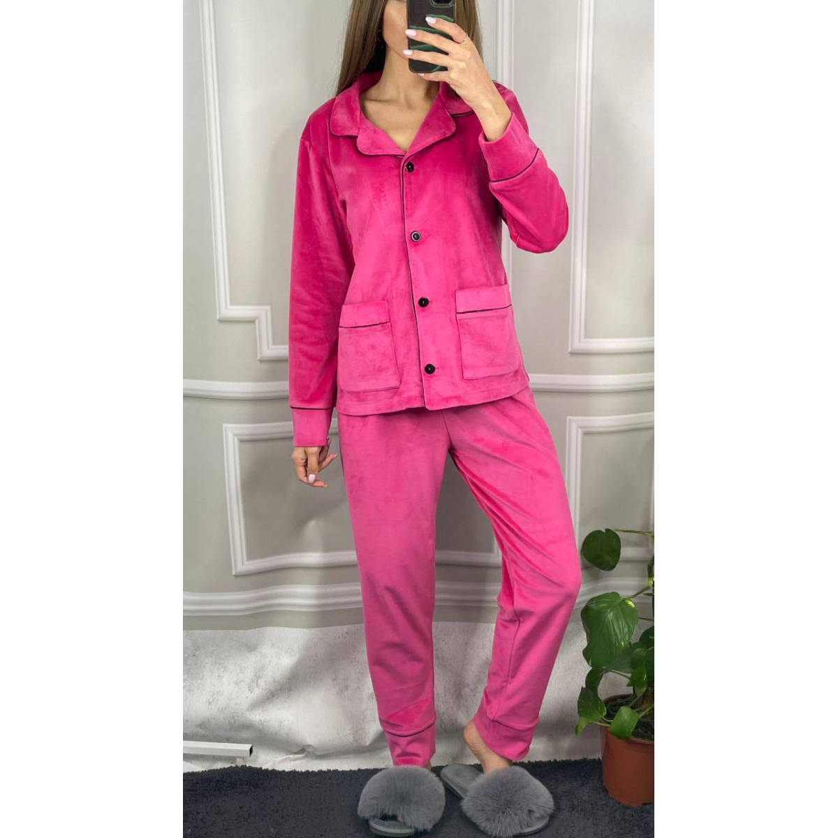 Костюм з плюшевого велюру на ґудзиках із двома кишенями. Малиновий, XS